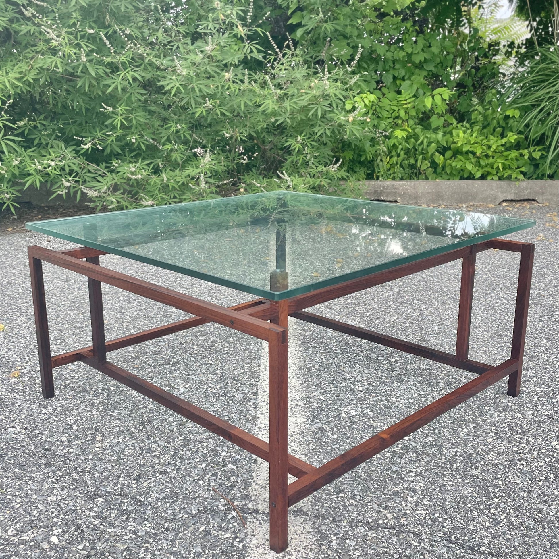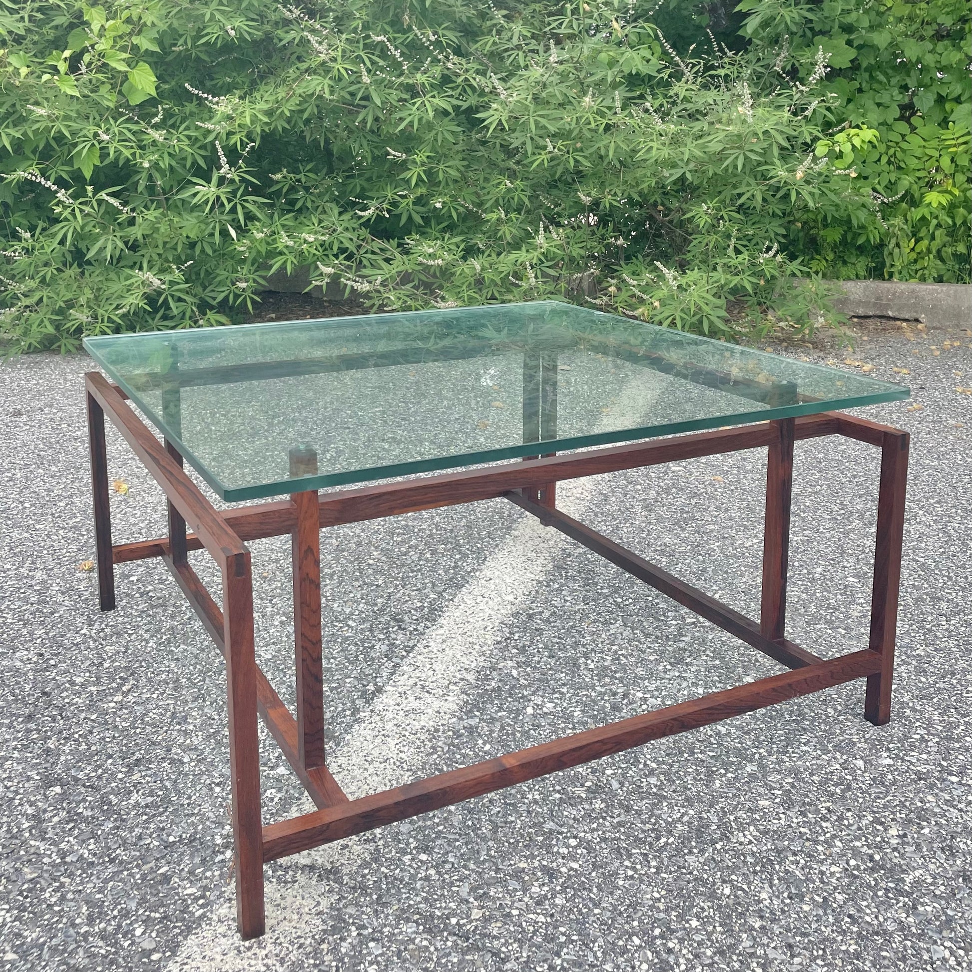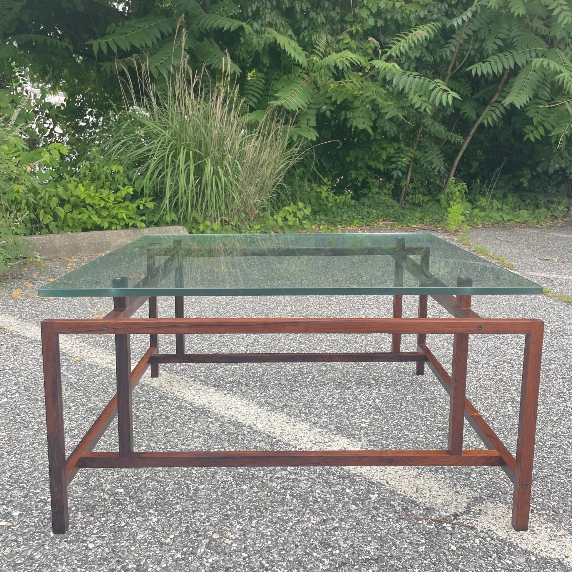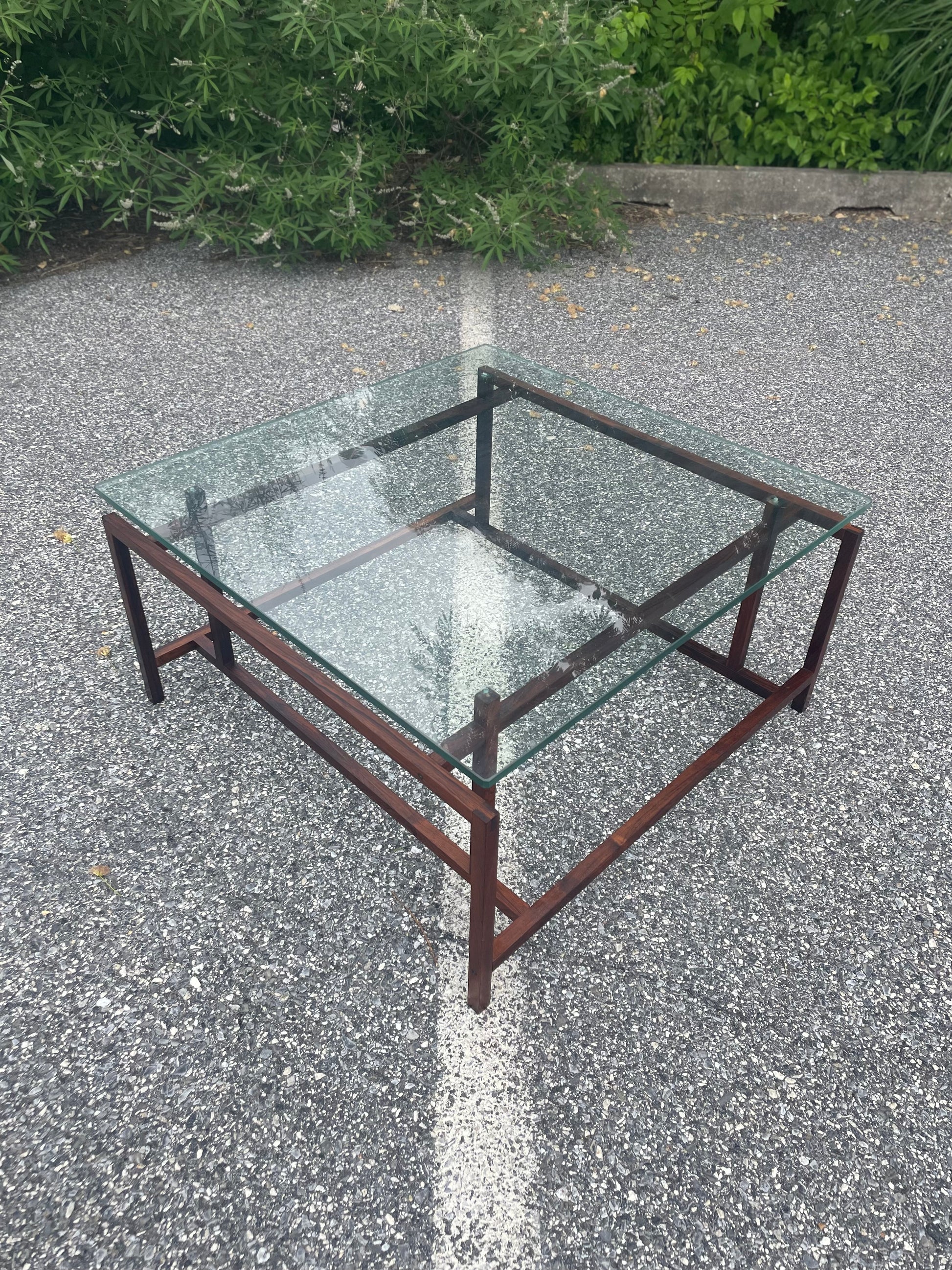 Gorgeous vintage rosewood & glass coffee table designed by Henning Nørgaard for Komfort of Denmark c. 1960s.