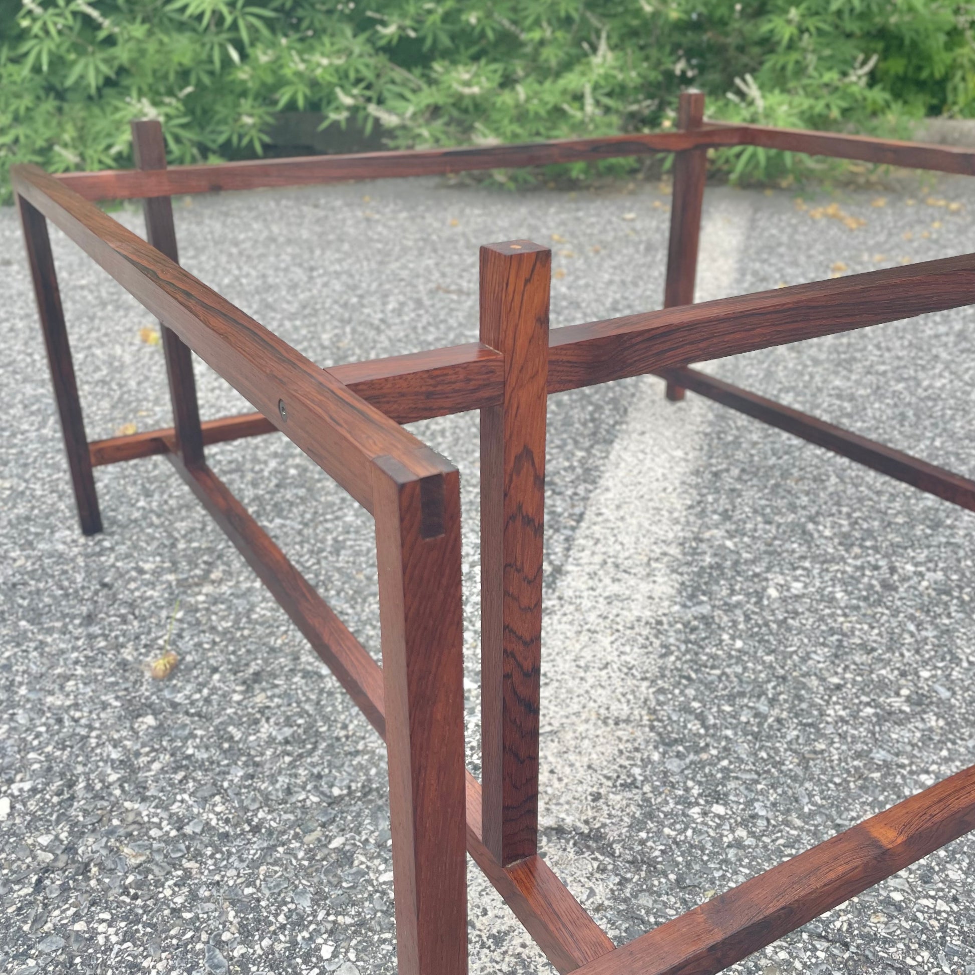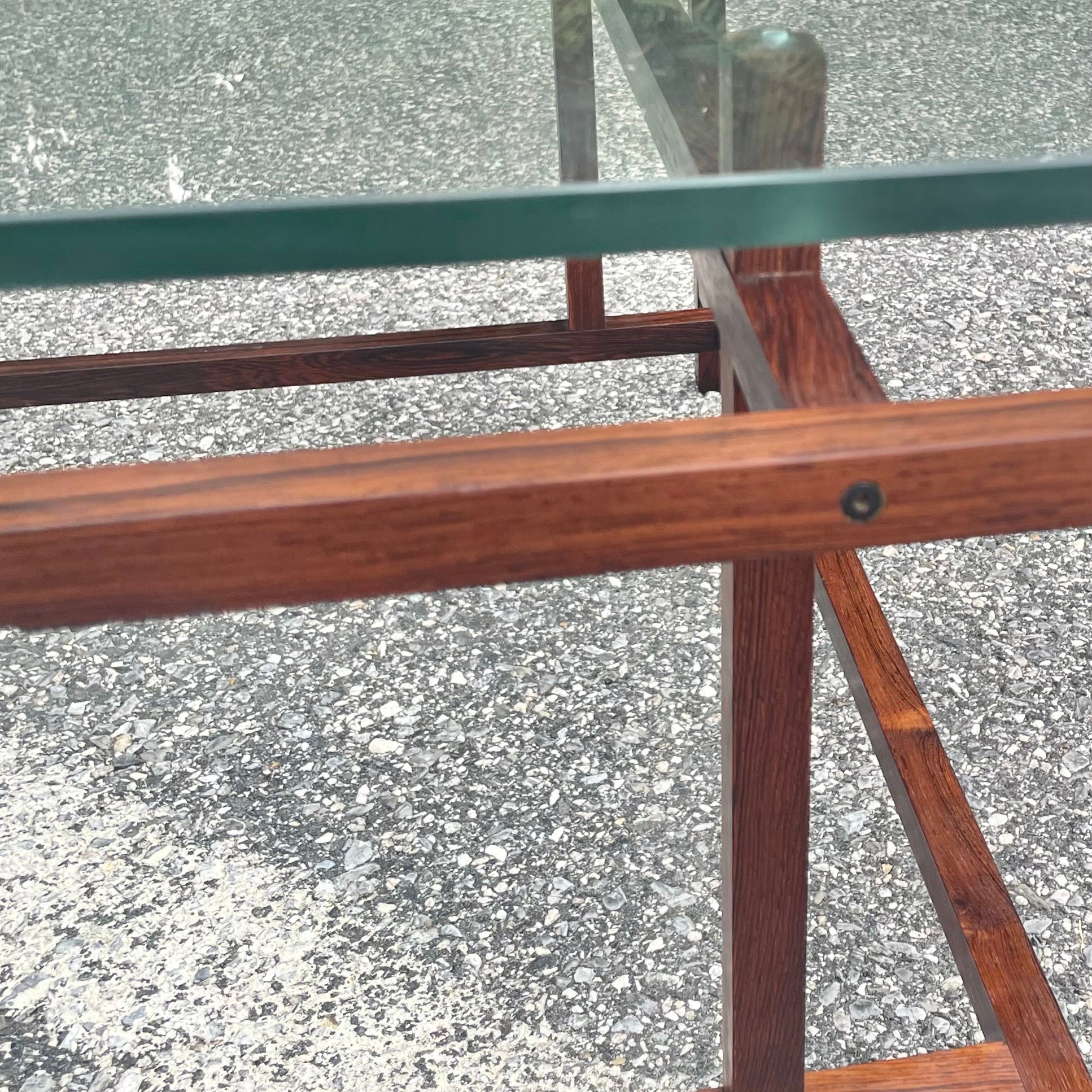 Clean, architectural forms & simple bridle joints show the rich detail and color of the solid rosewood, with the glass top acting as a viewing window to so many intriguing angles of the frame. Very usable in a typical Scandinavian modern curated space, but versatile to so much more as the design is not imposing whilst sacrificing no beauty.