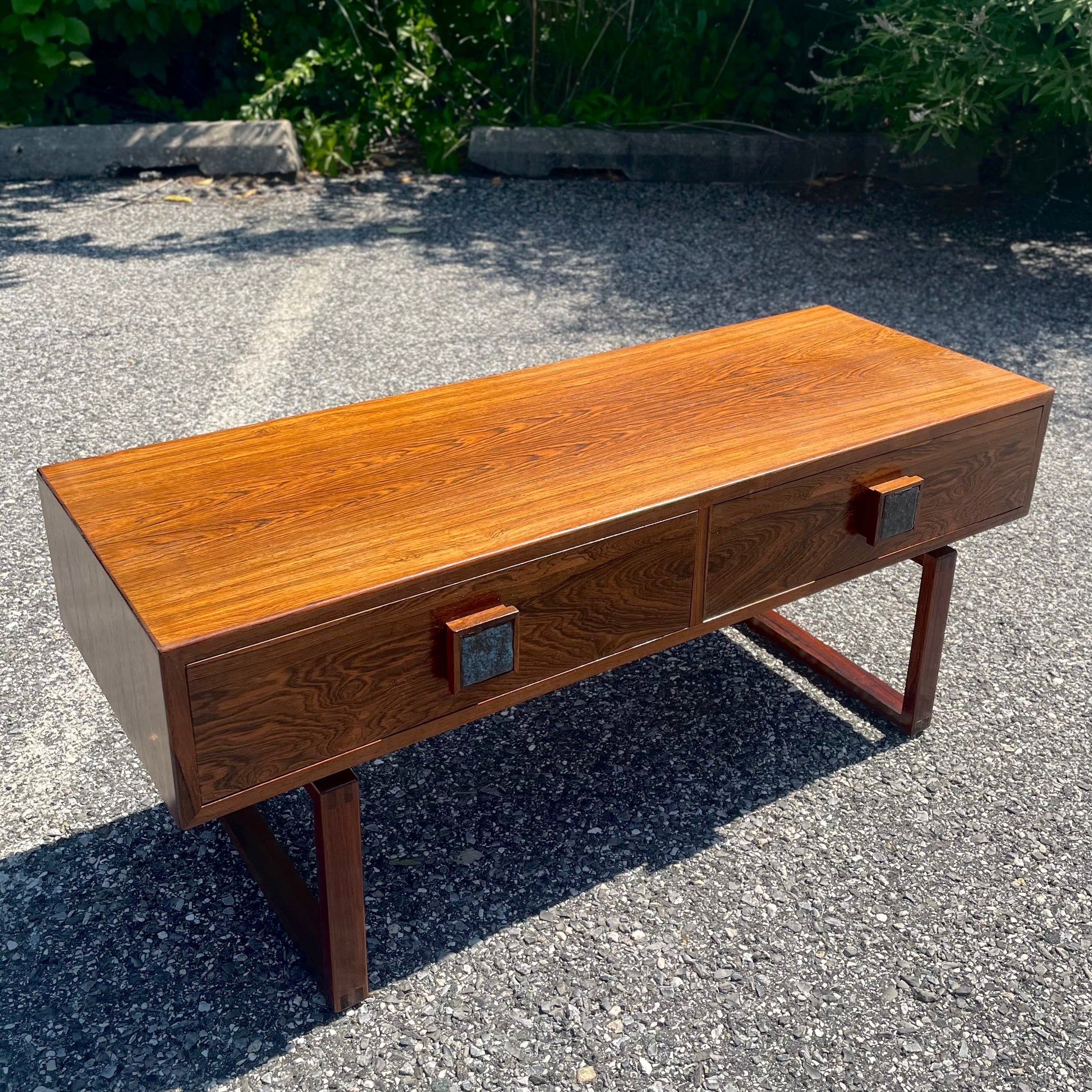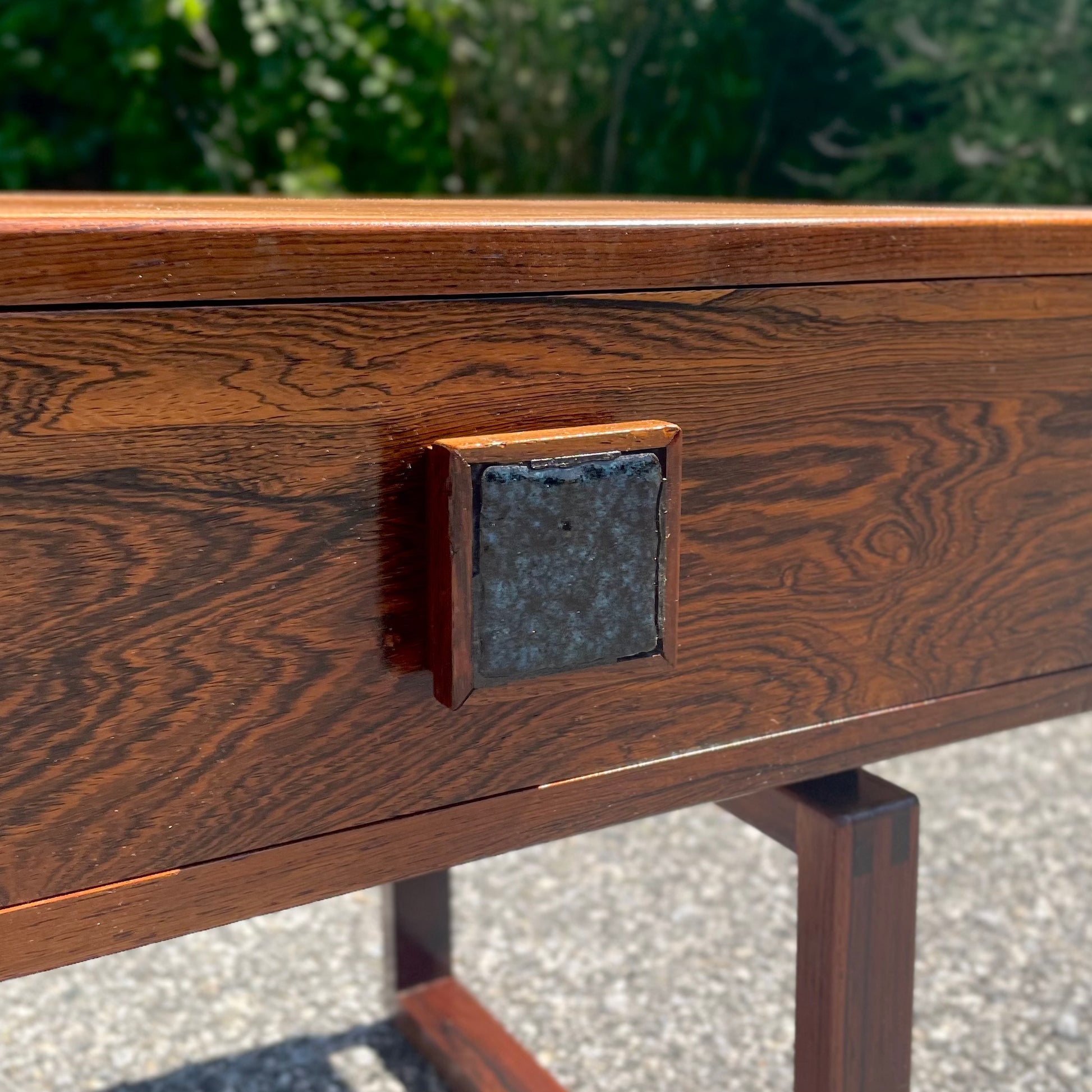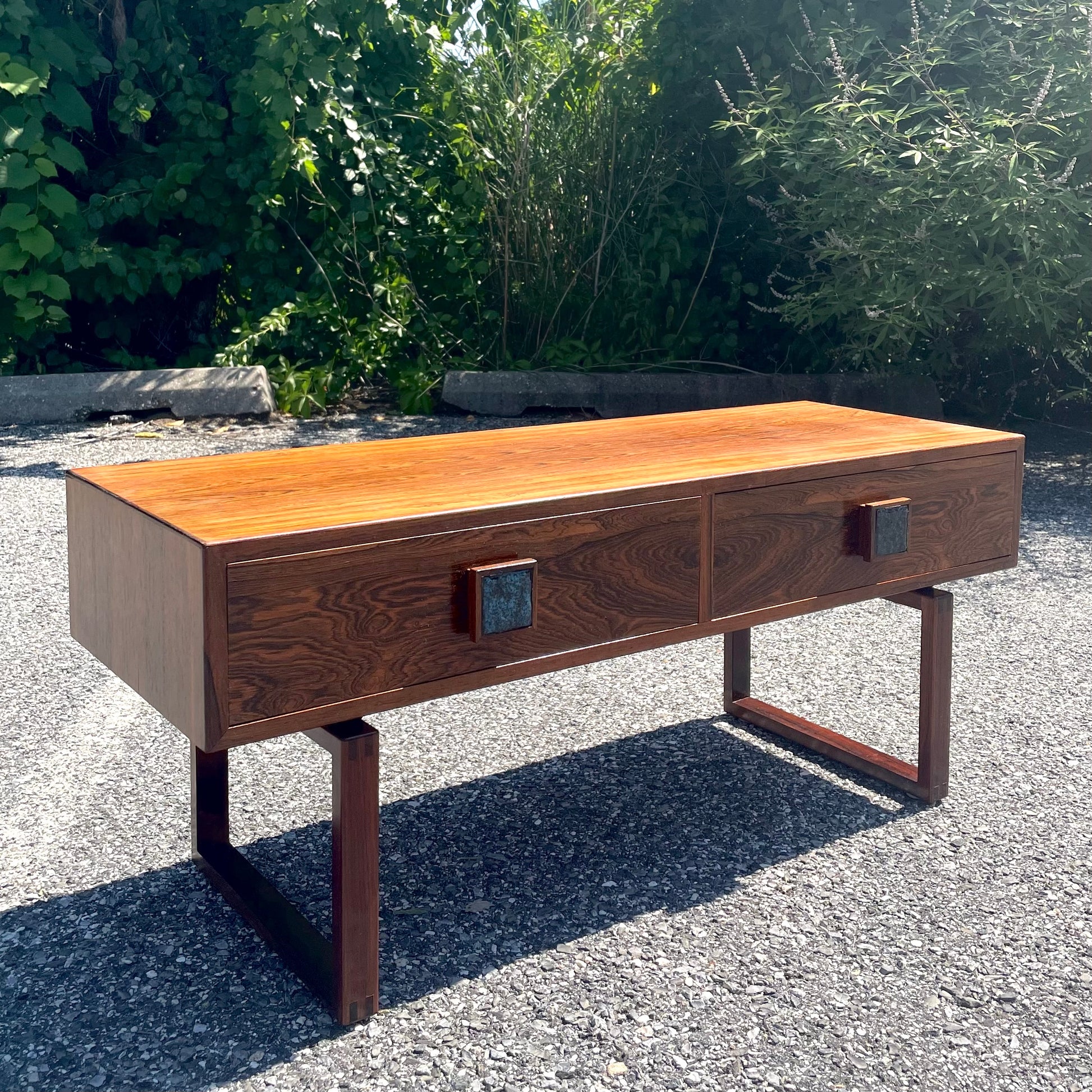 Danish Modern Style Rosewood Console Table w/ Ceramic Inlay
