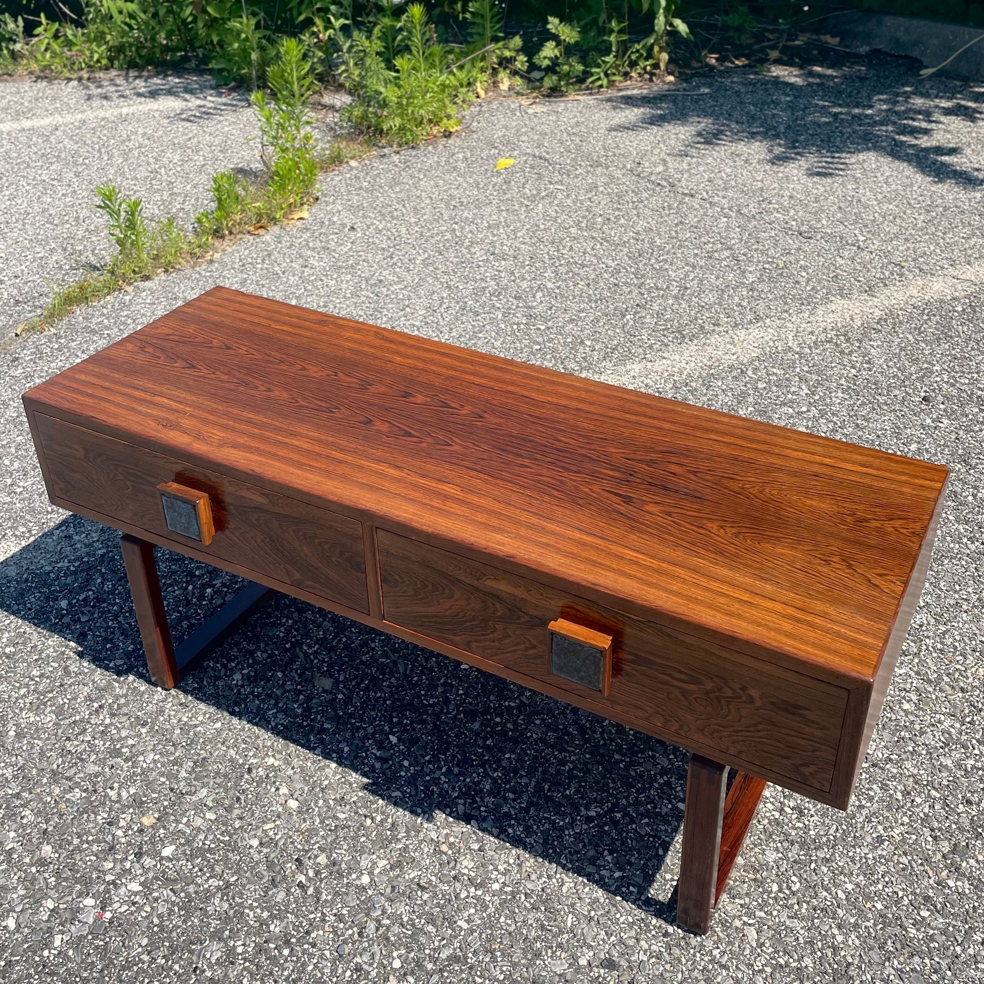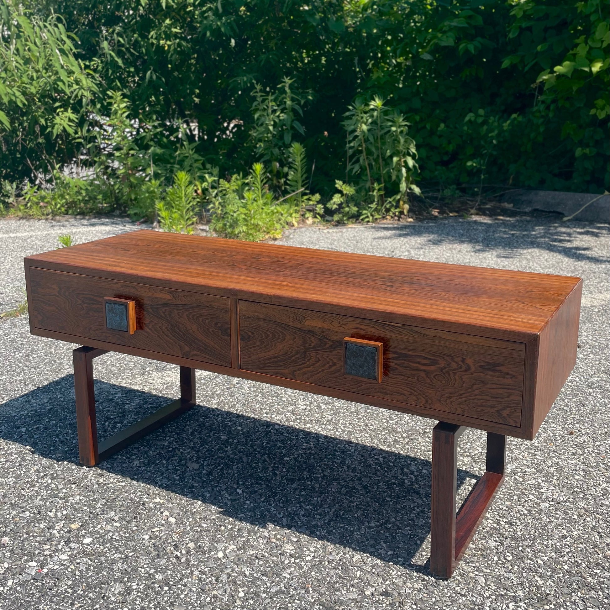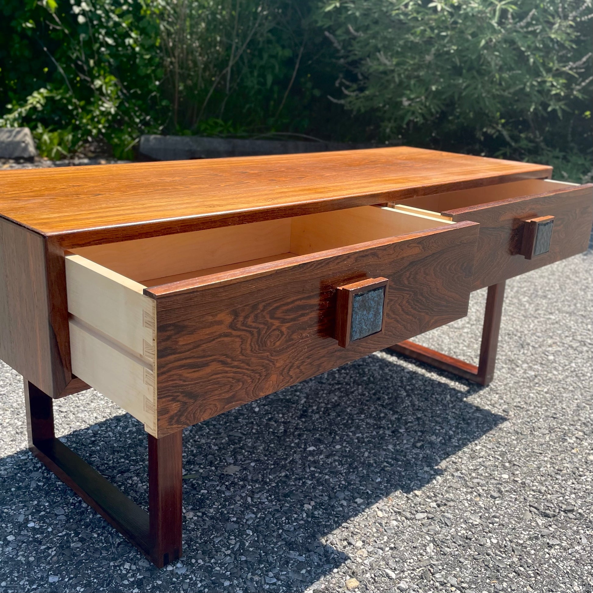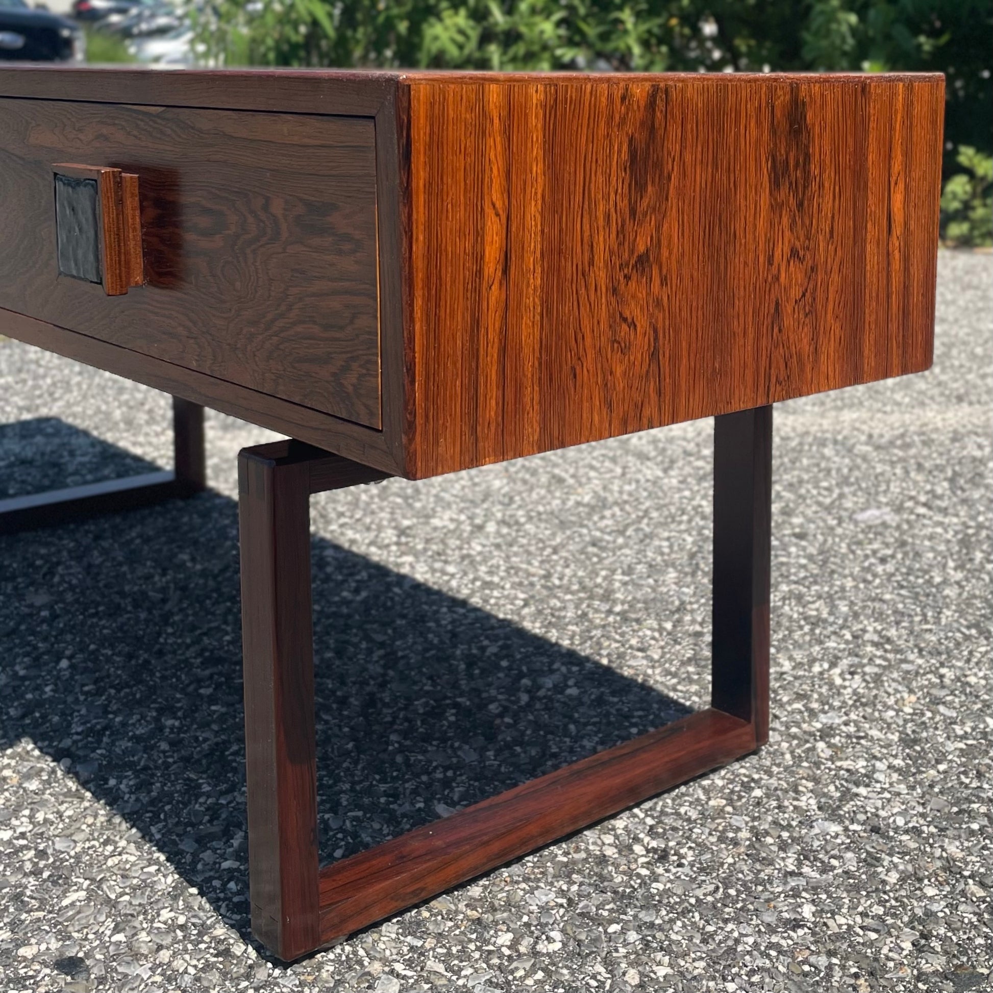 Danish Modern Style Rosewood Console Table w/ Ceramic Inlay