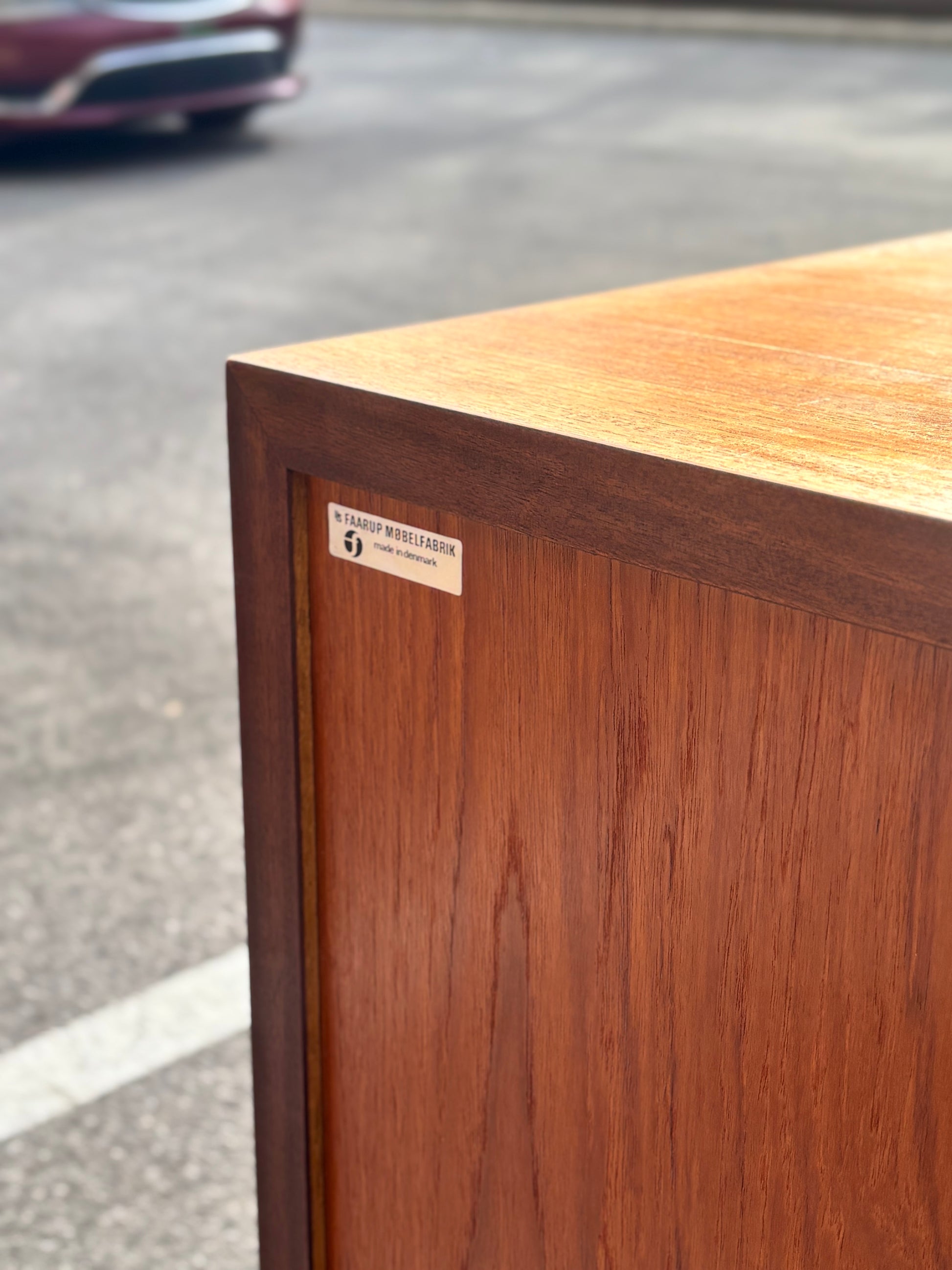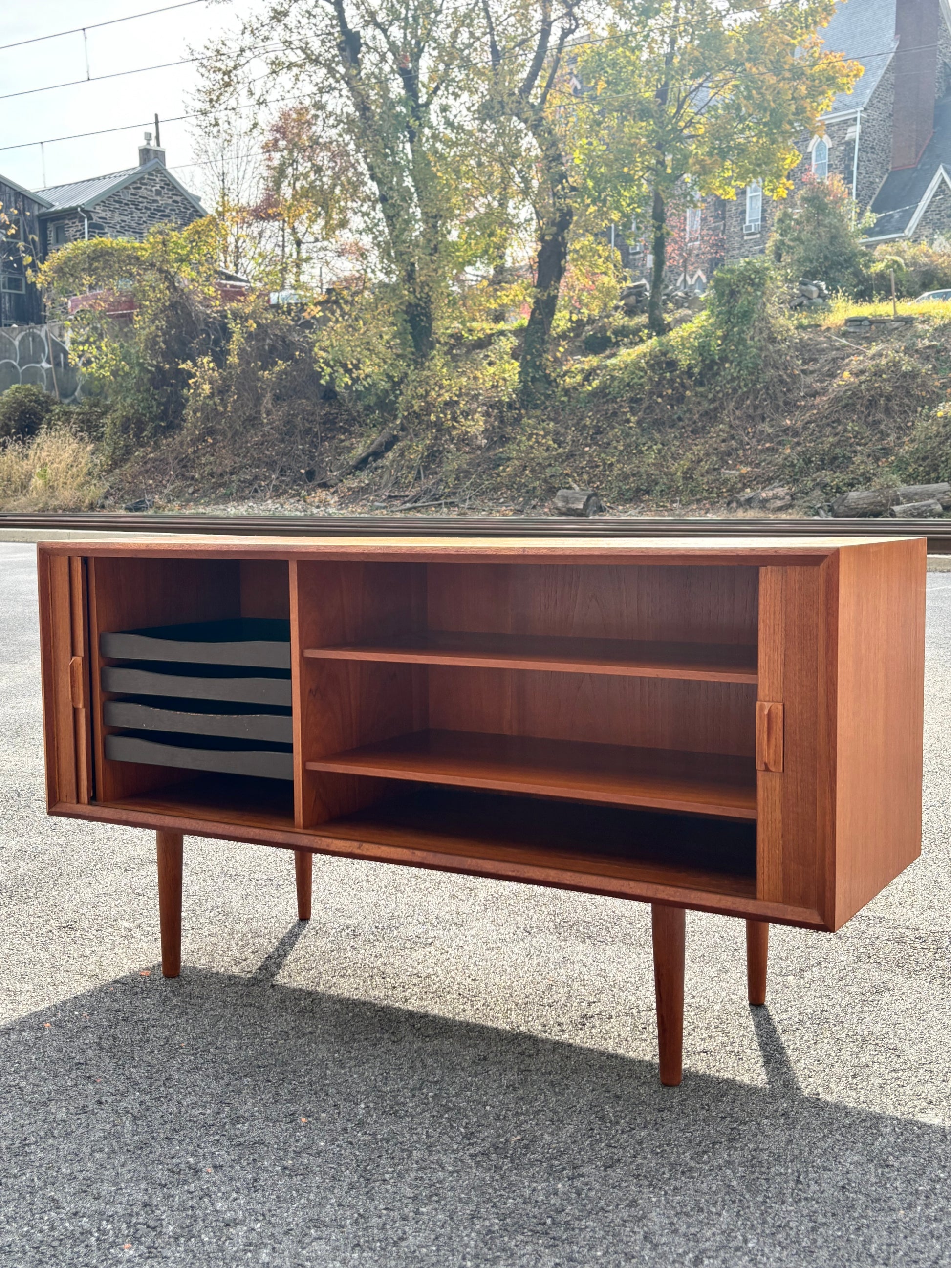 Teak tambour credenza by Svend Aage Larsen for Faarup Møbelfabrik c.1960s.