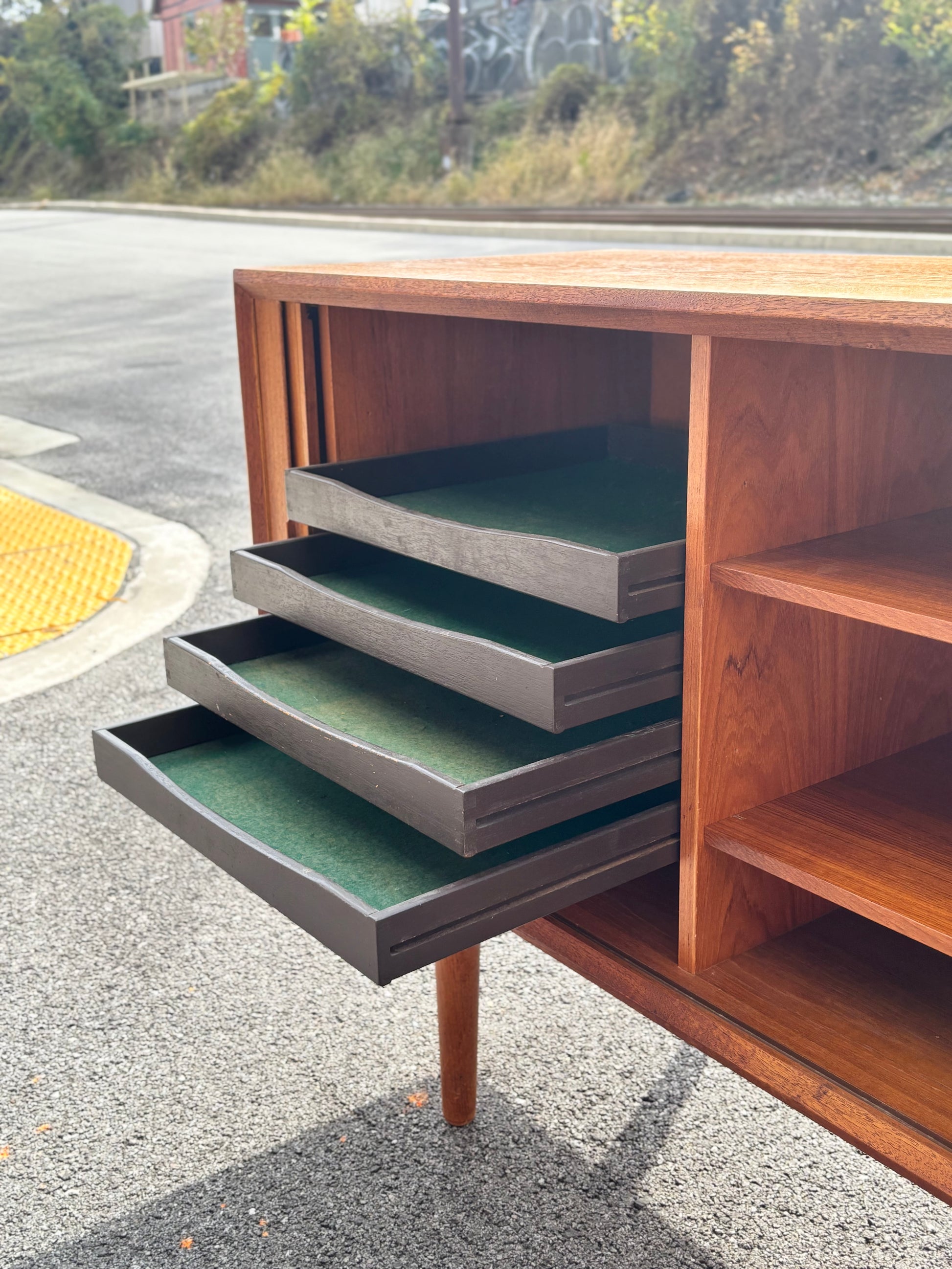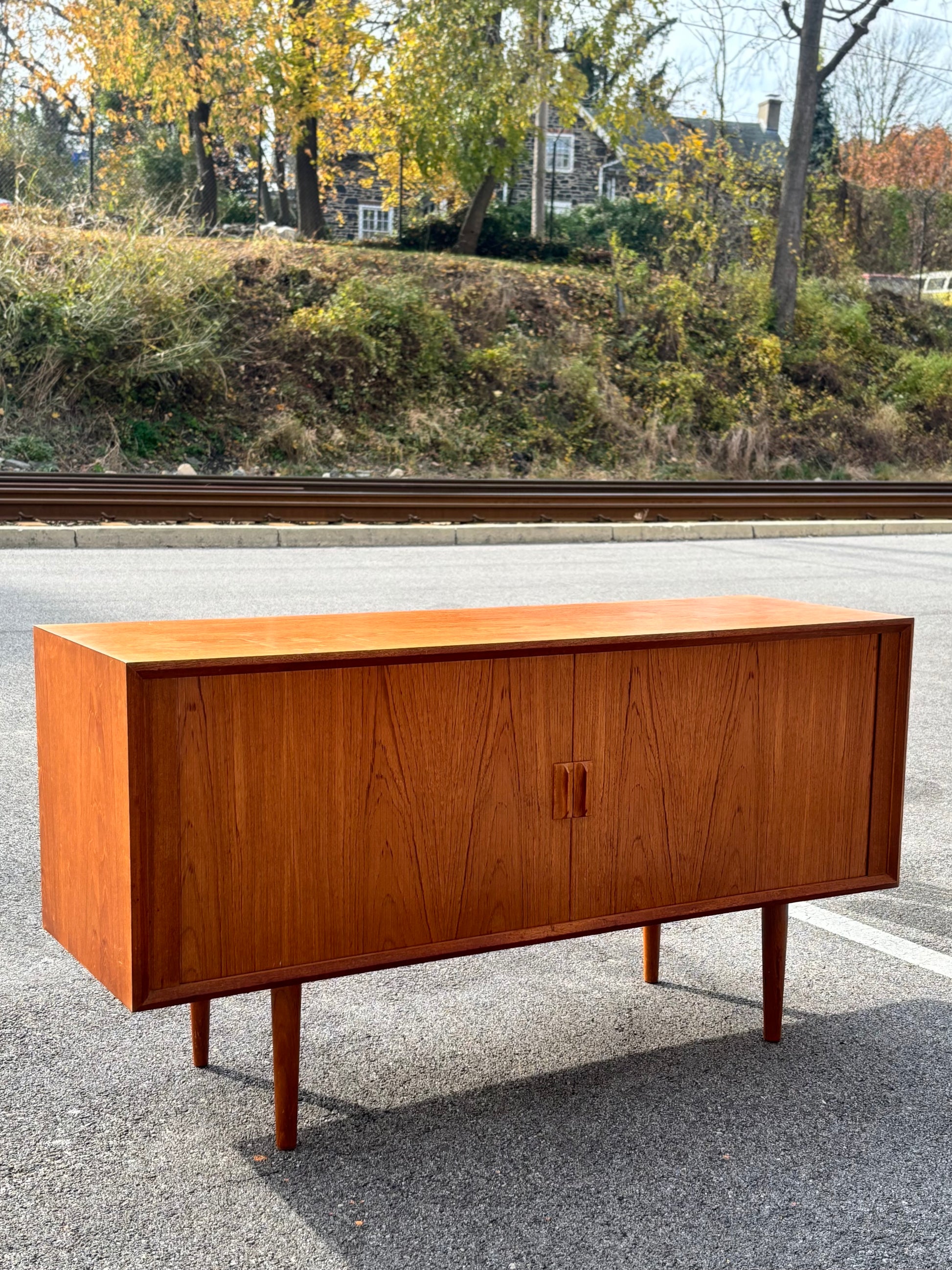 Danish Modern Teak Tambour Credenza by Svend Aage Larsen for Faarup Møbelfabrik