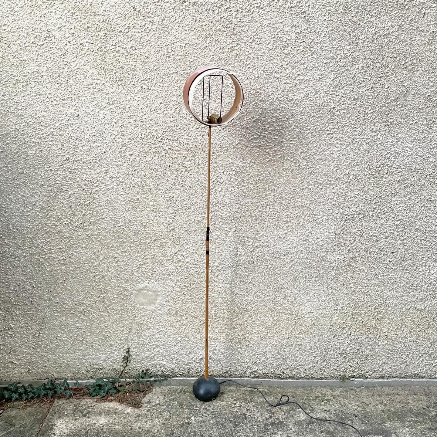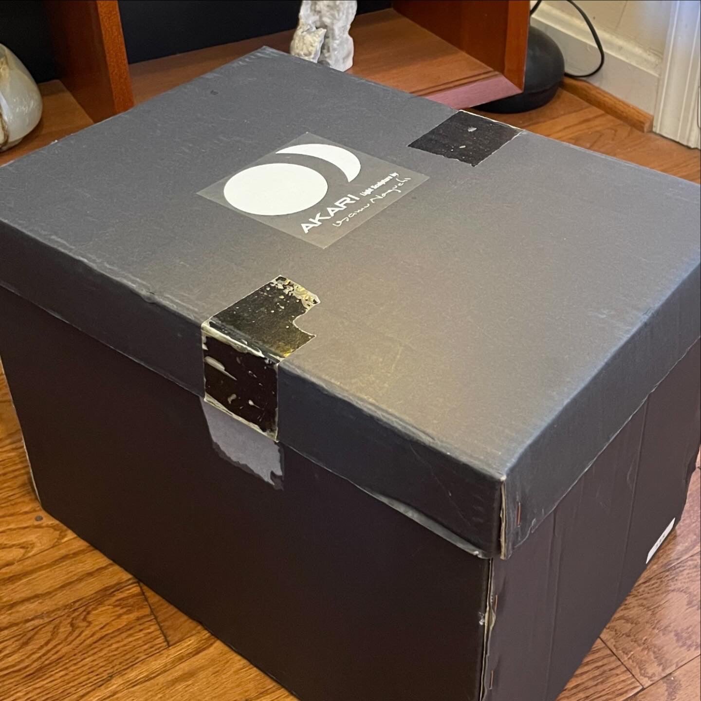 This specific example of the Akari series is in good overall condition and is functional, but shows its age readily, mostly by the lack of original rice paper shades, and the loose wire whipping that joins the two bamboo sections (I believe this is an attempted repair by the original owner). I do have a replacement wooden ring in the original Akari box, specific measurements can be provided to aide in replacing the shades.