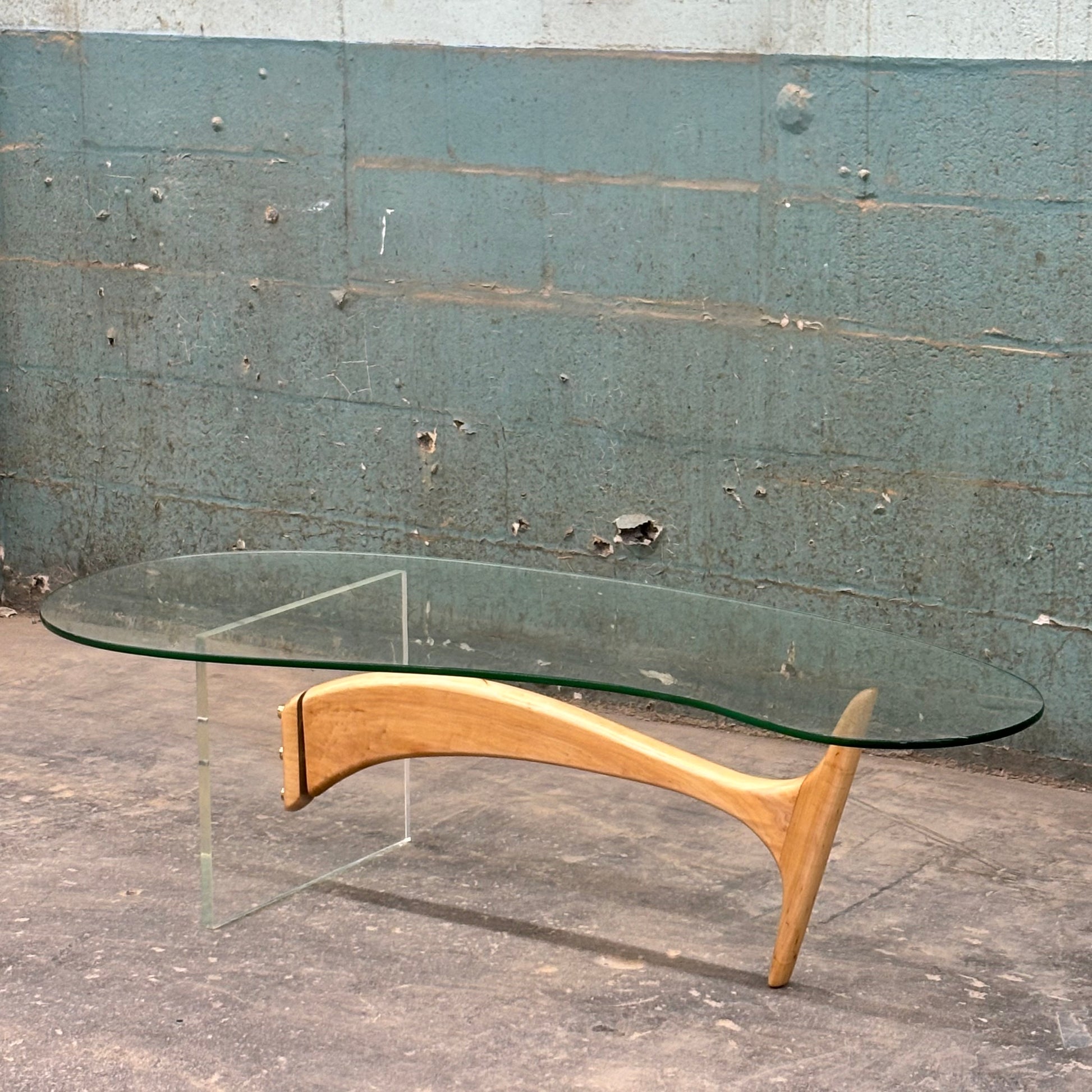 Mid Century Modern Sculpted Wood & Lucite Coffee Table