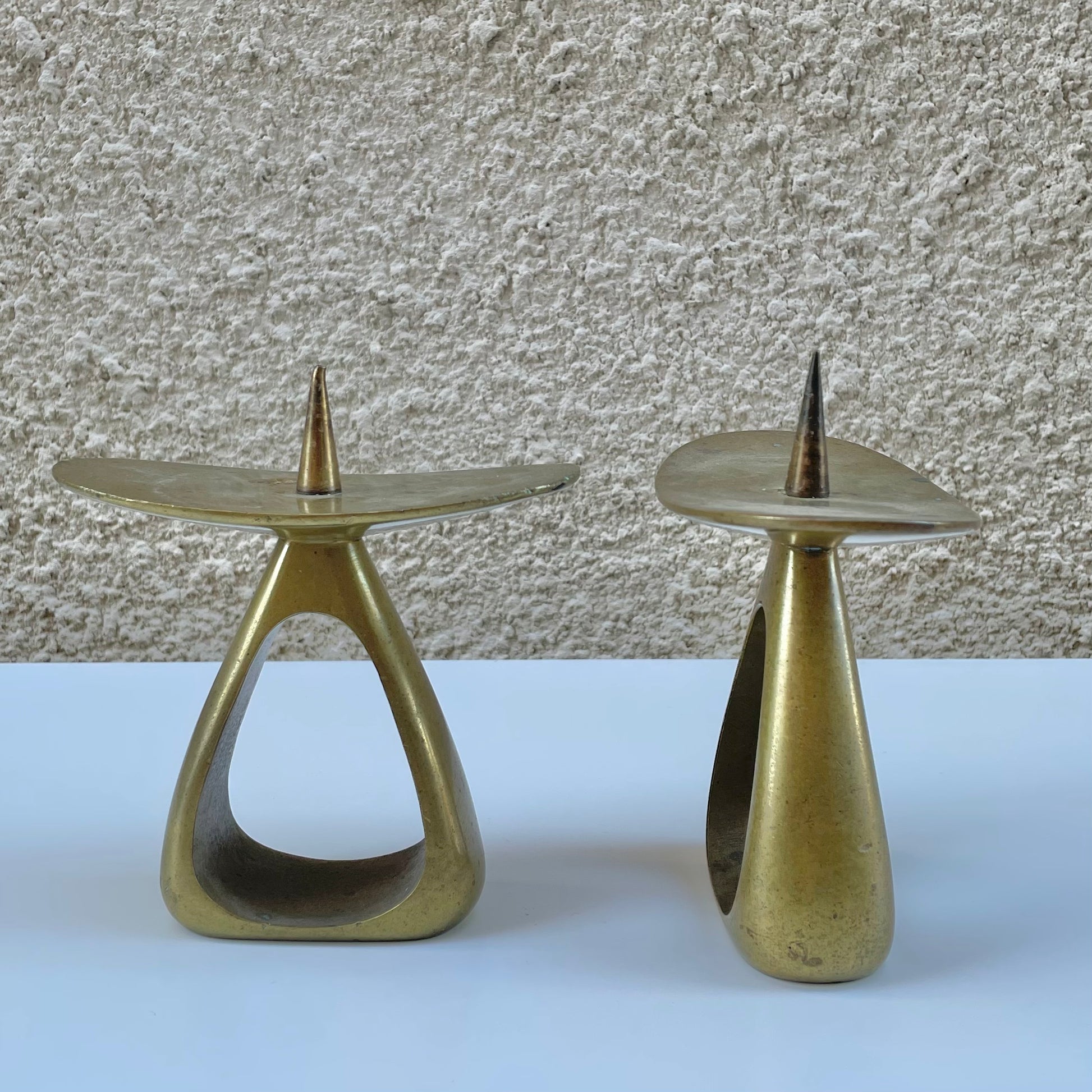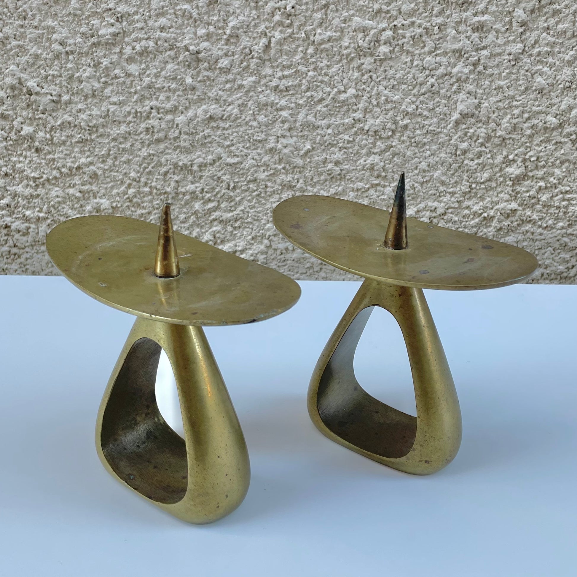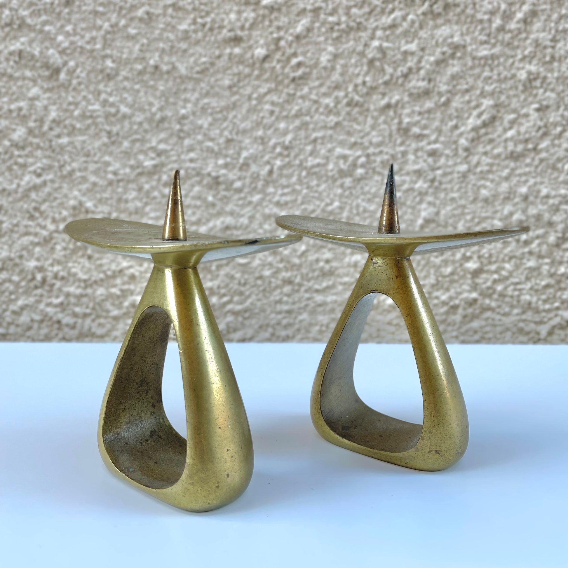 Vintage Mid-Century model nr. 3470 solid brass candle holders by Werkstätte Carl Auböck, circa 1940s-70s.