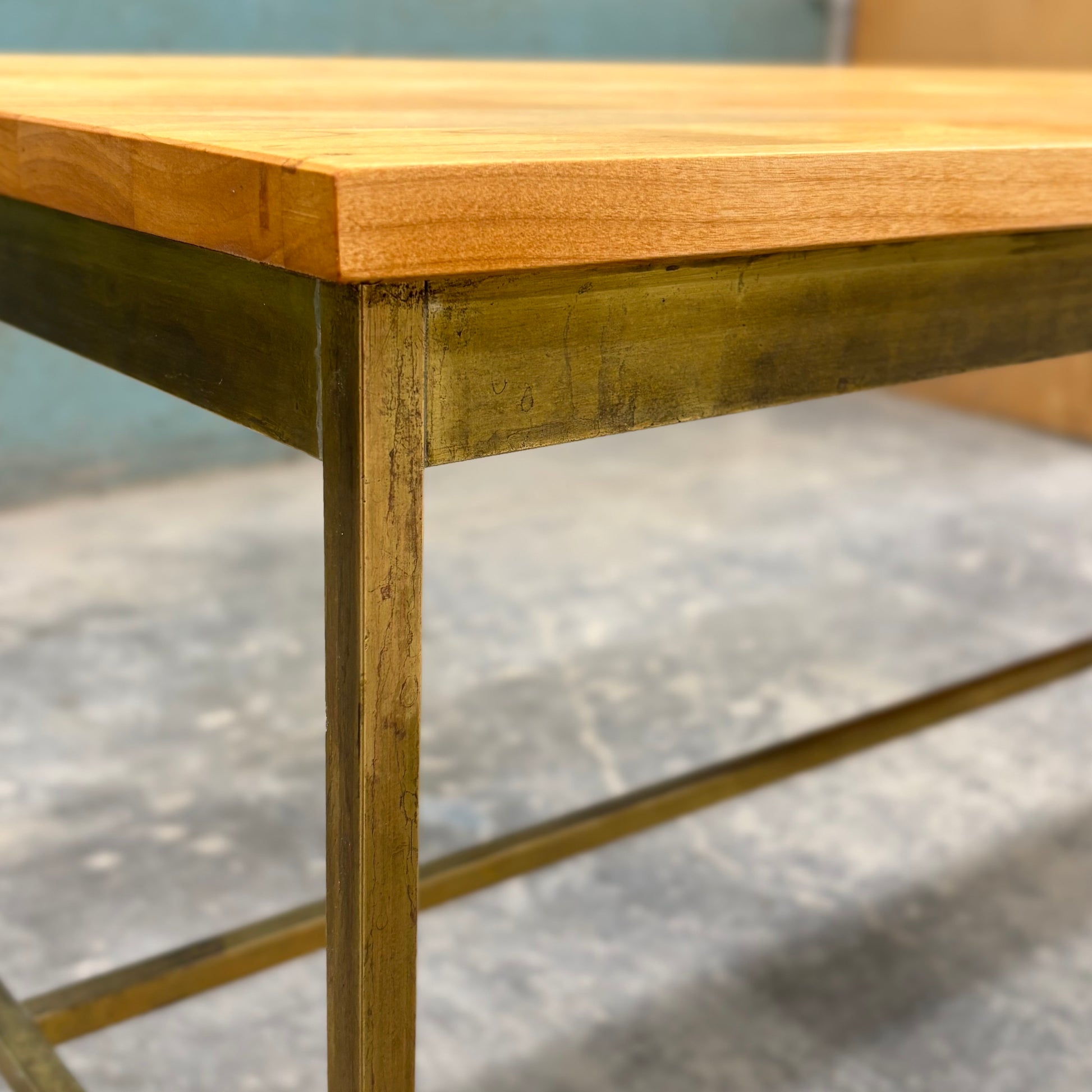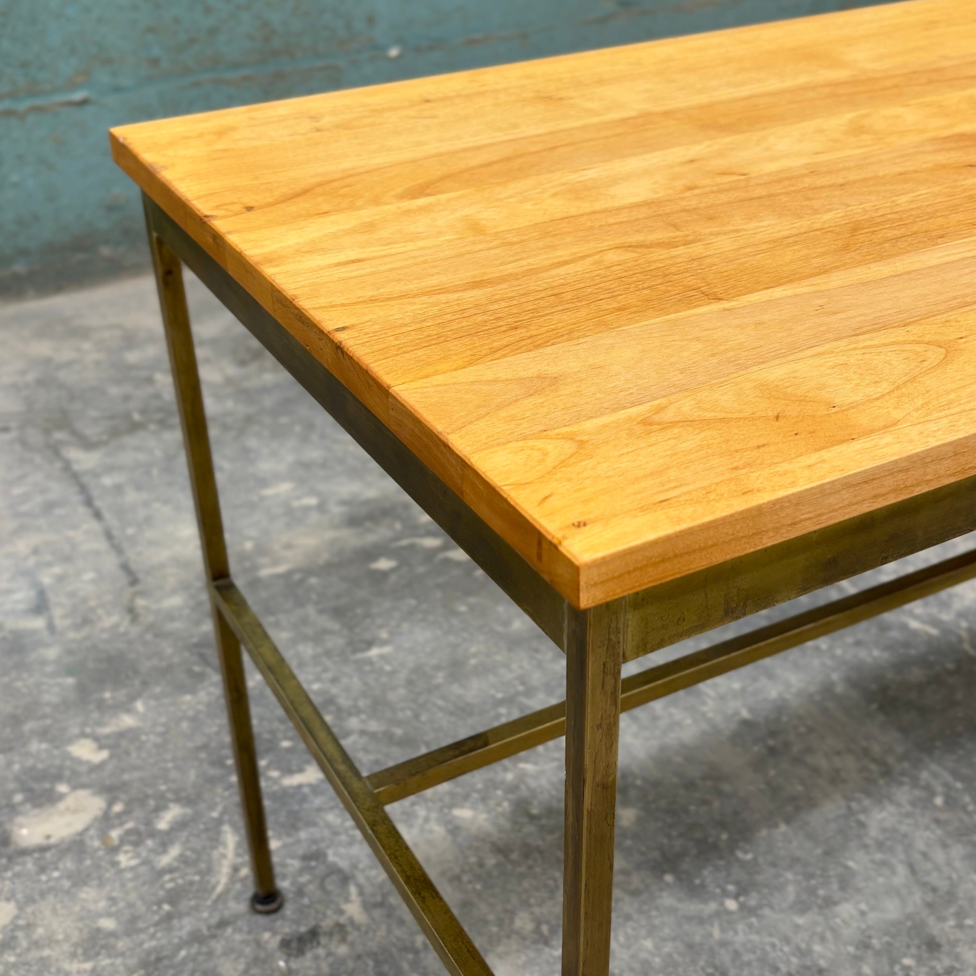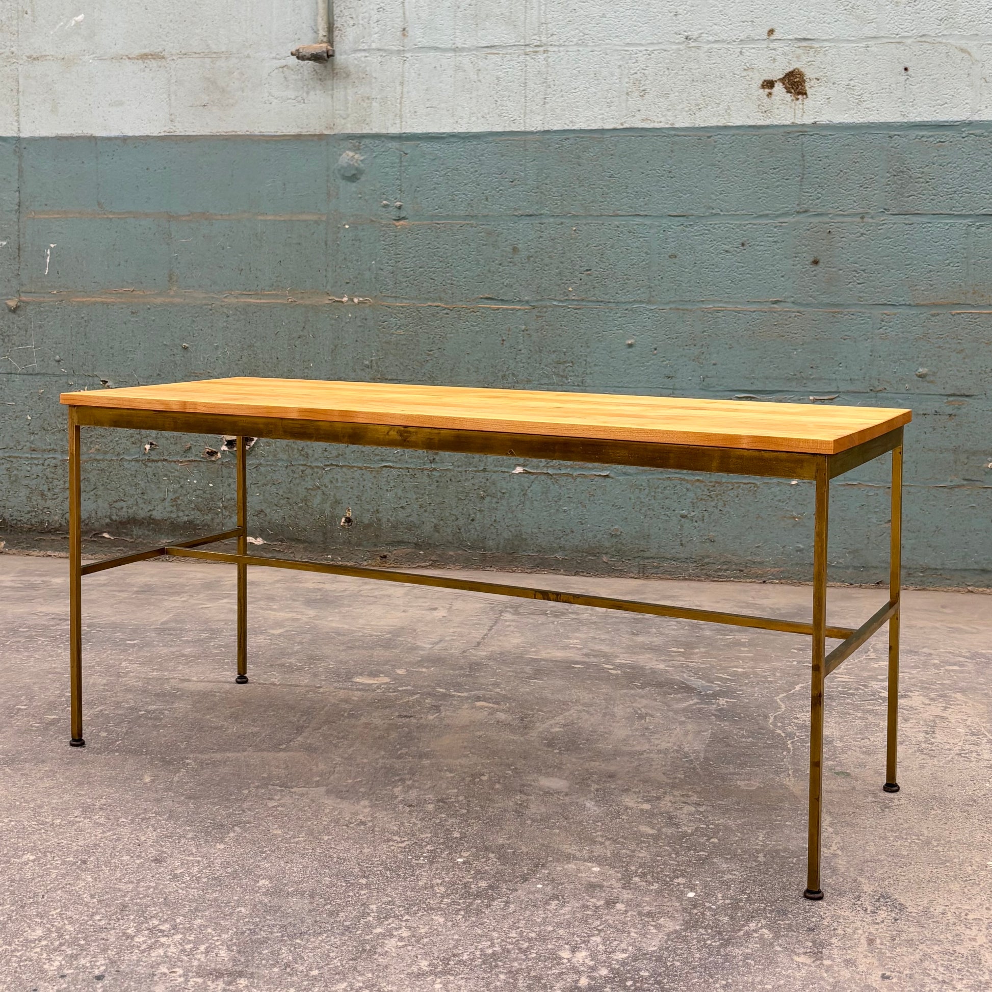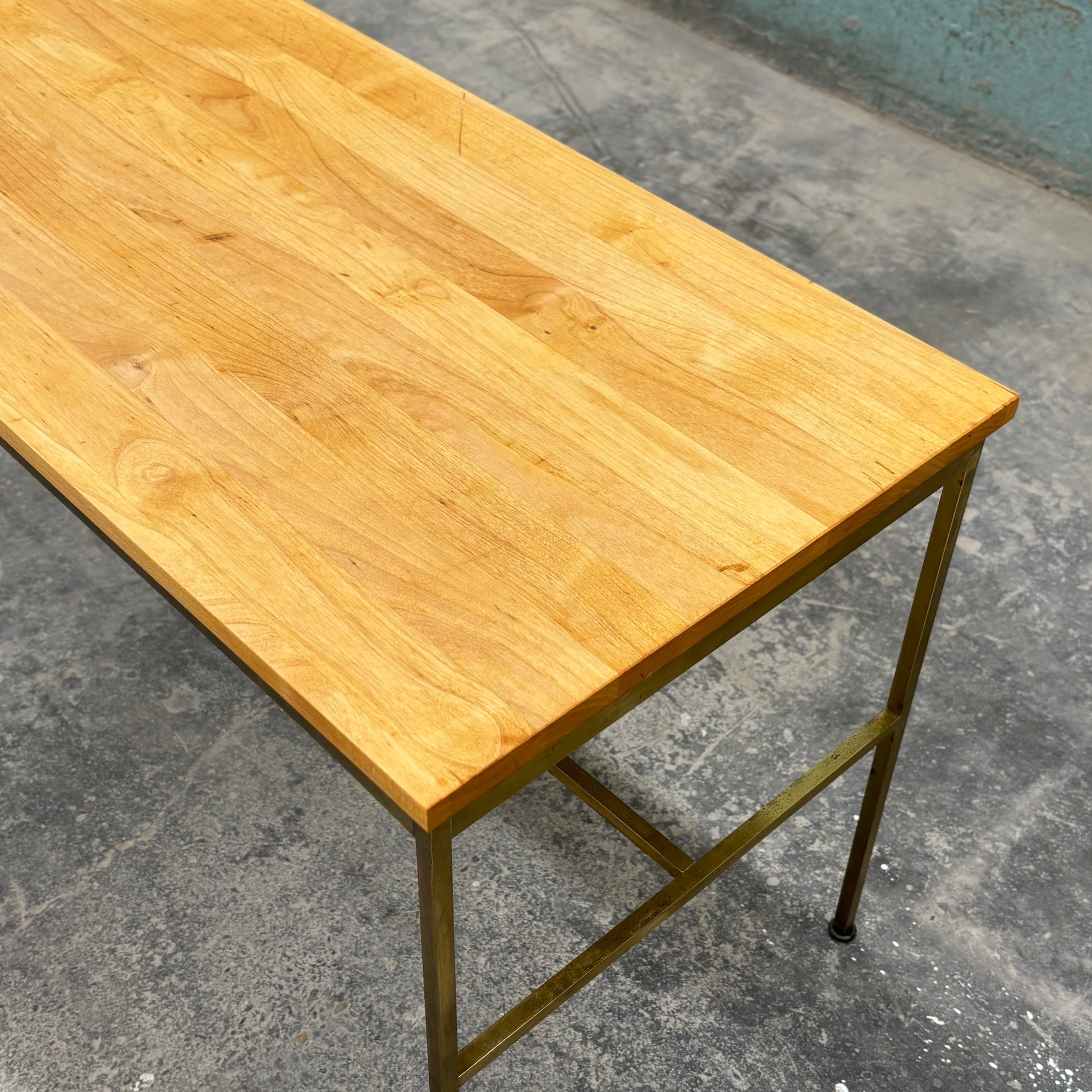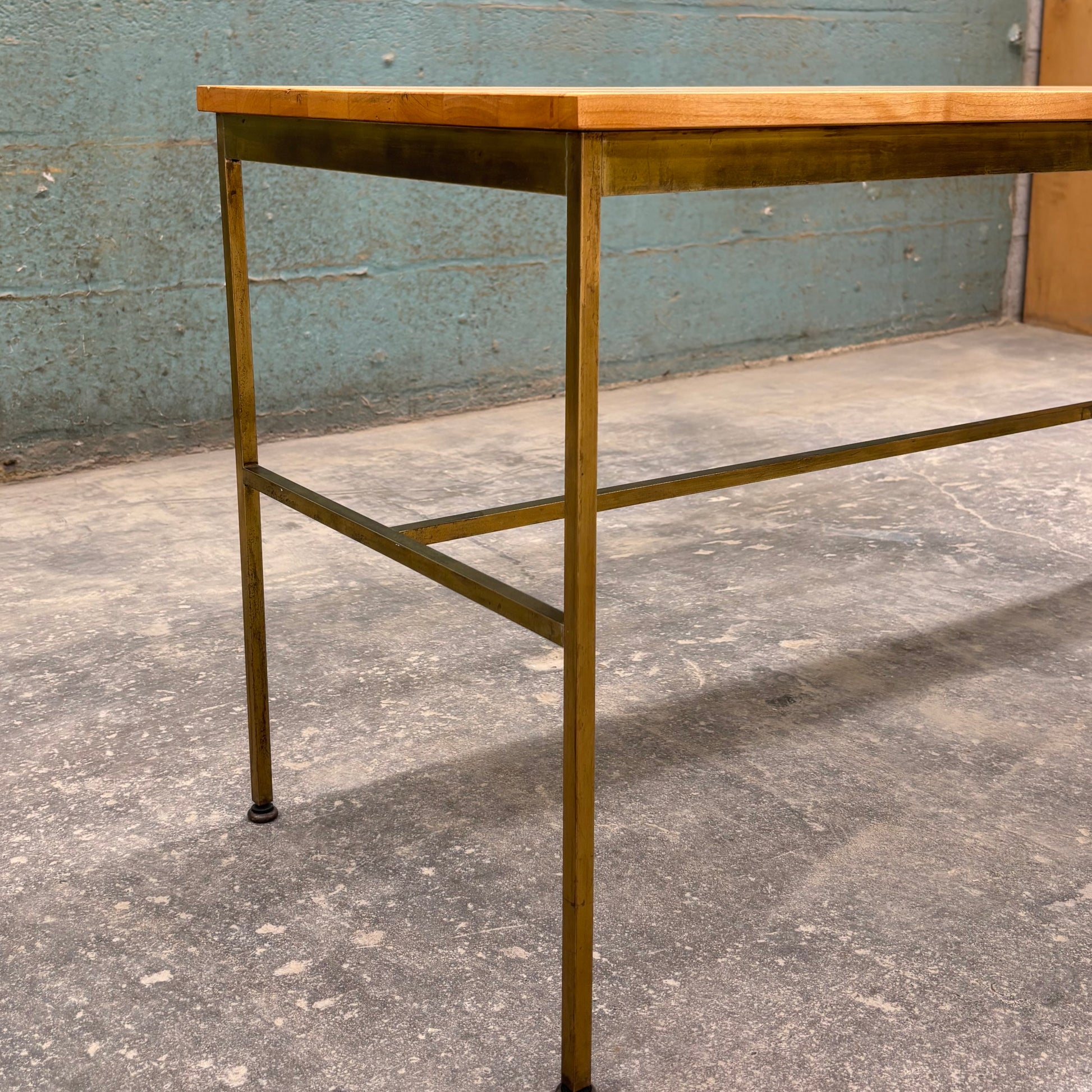 Wonderful brass console table with custom solid maple top, designed by Paul McCobb for Directional Furniture’s ‘Irwin’ collection, circa 1950s.