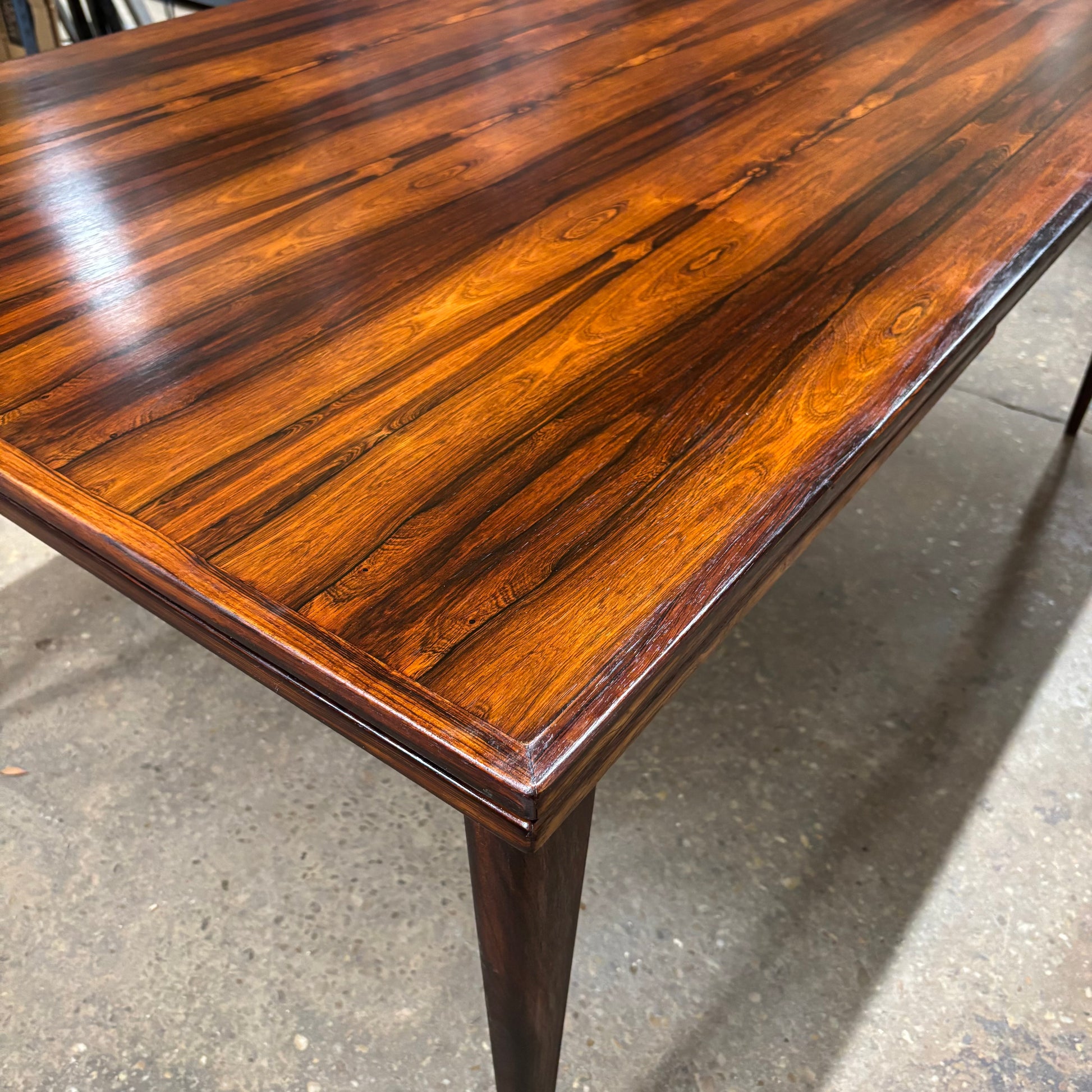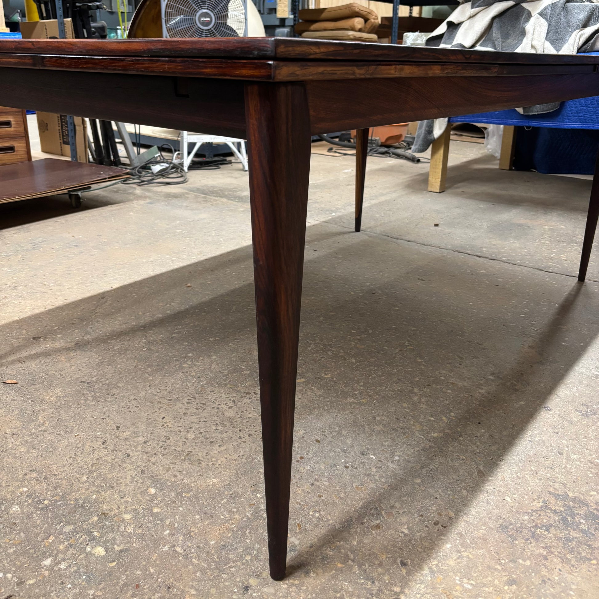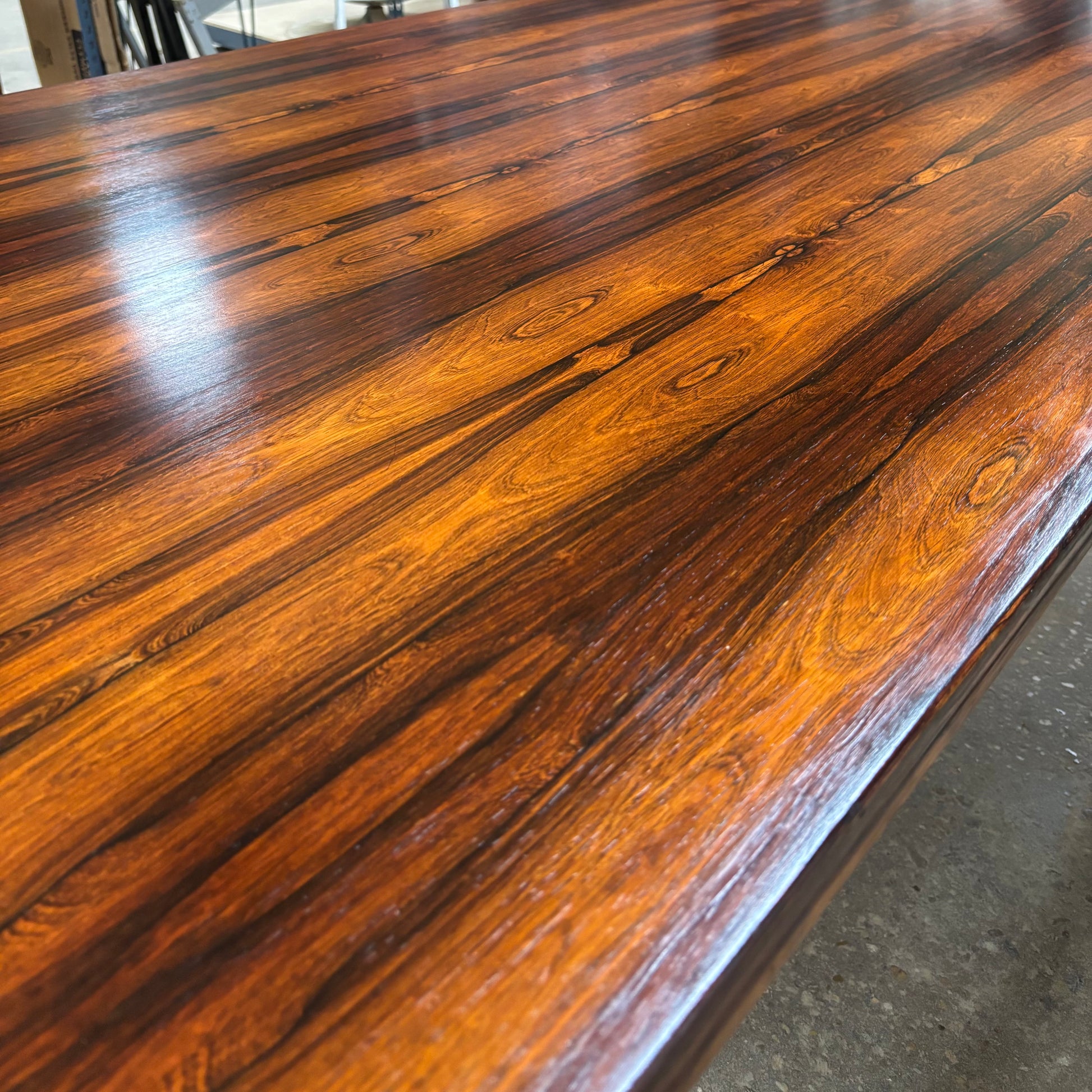 Striking rosewood grain on the top surfaces, with solid rosewood trim and frame. The tapered legs demonstrate expert quality construction with their subtle angles and smooth shape.
