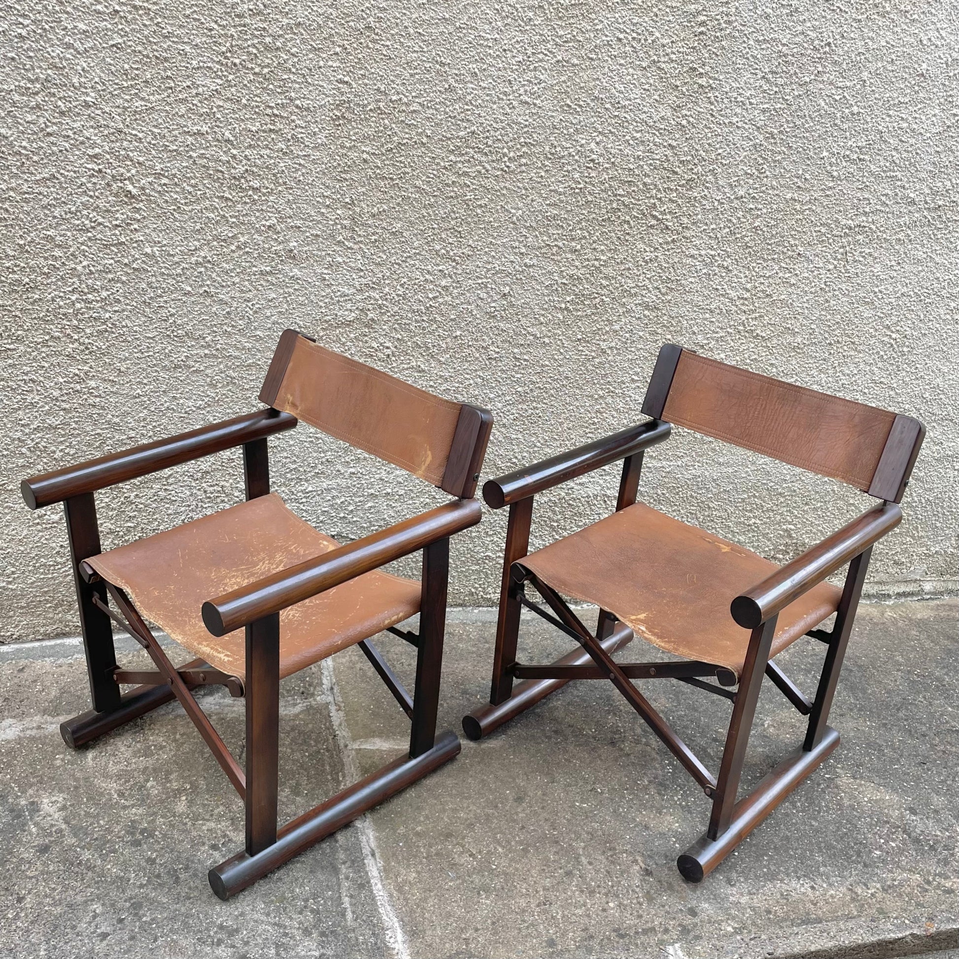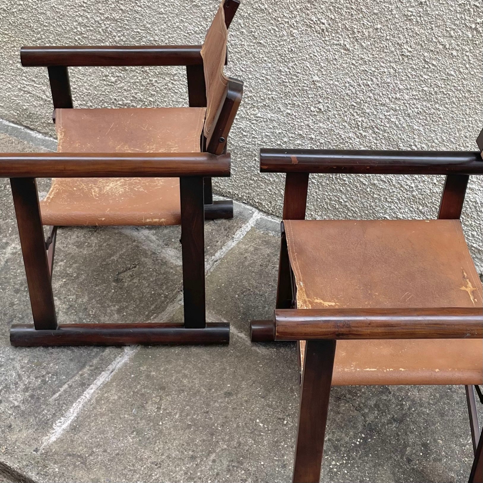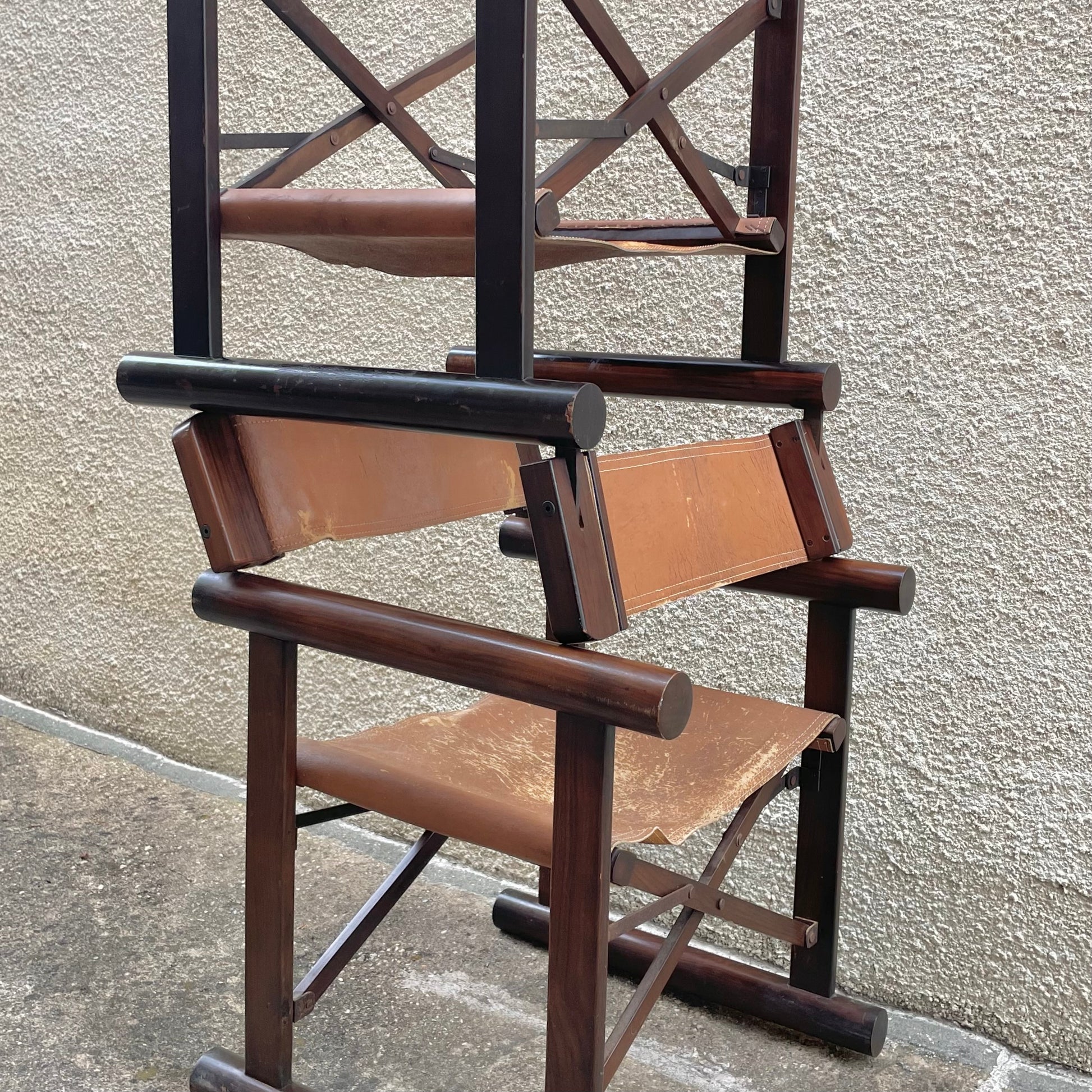 Vintage Brazilian Wood & Leather Folding Chairs by Sergio Rodrigues for OCA