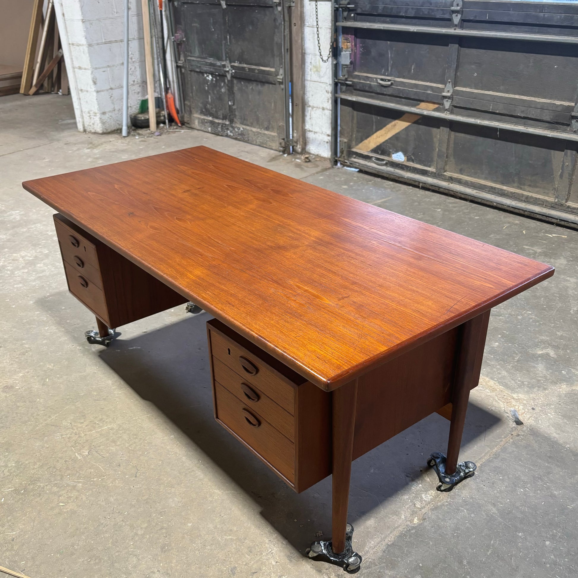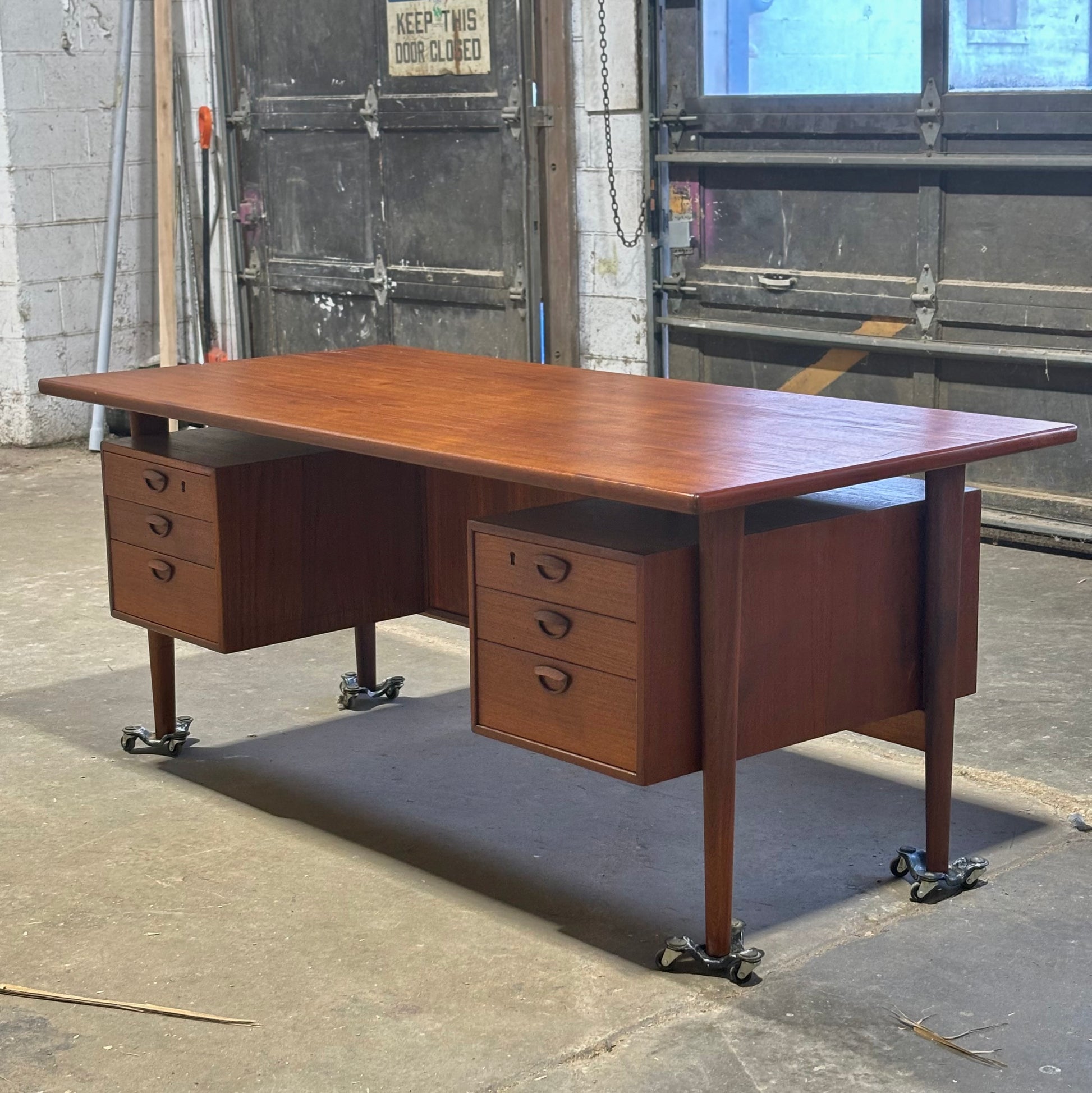 Vintage Danish MCM Teak Executive Desk by Kai Kristiansen for FM Møbler