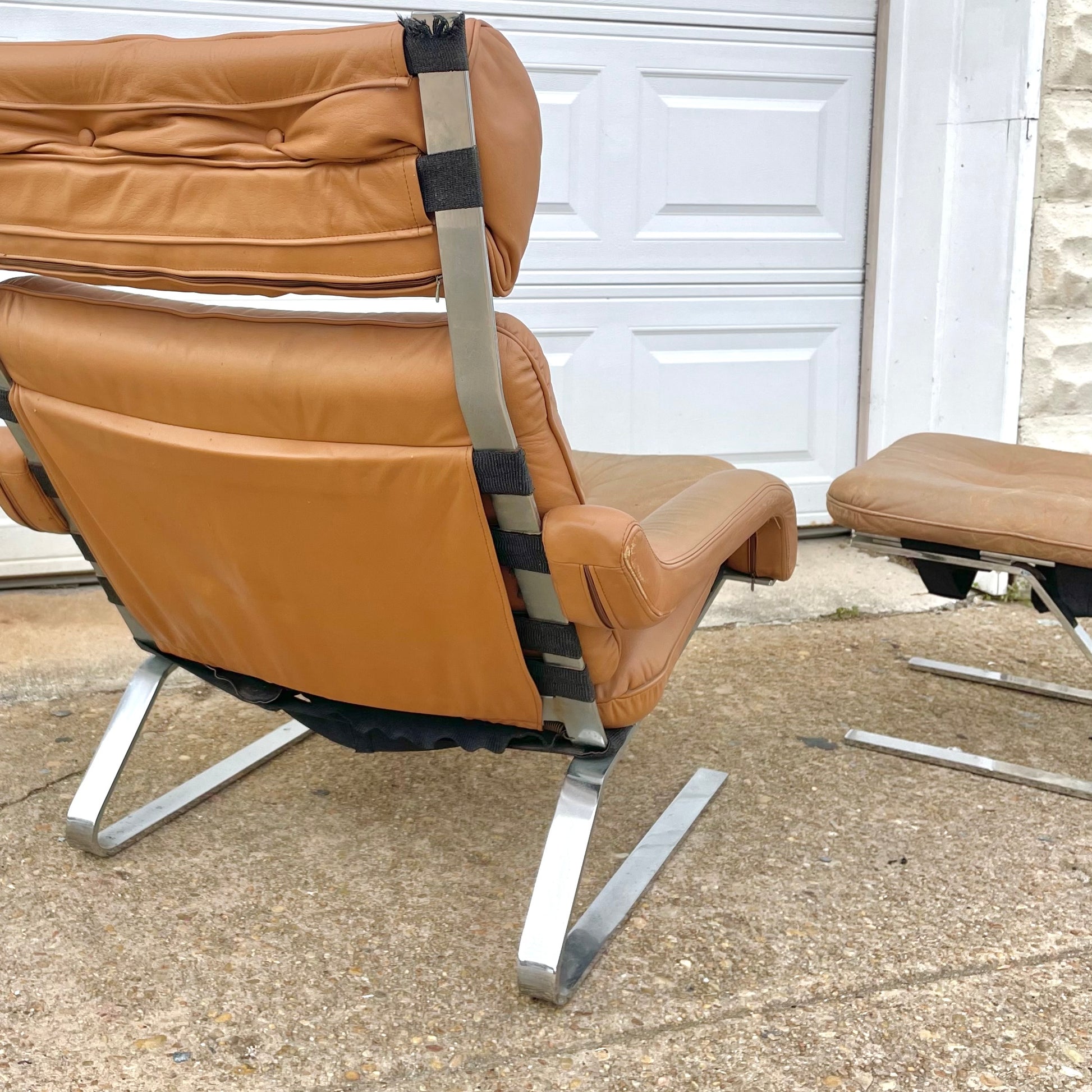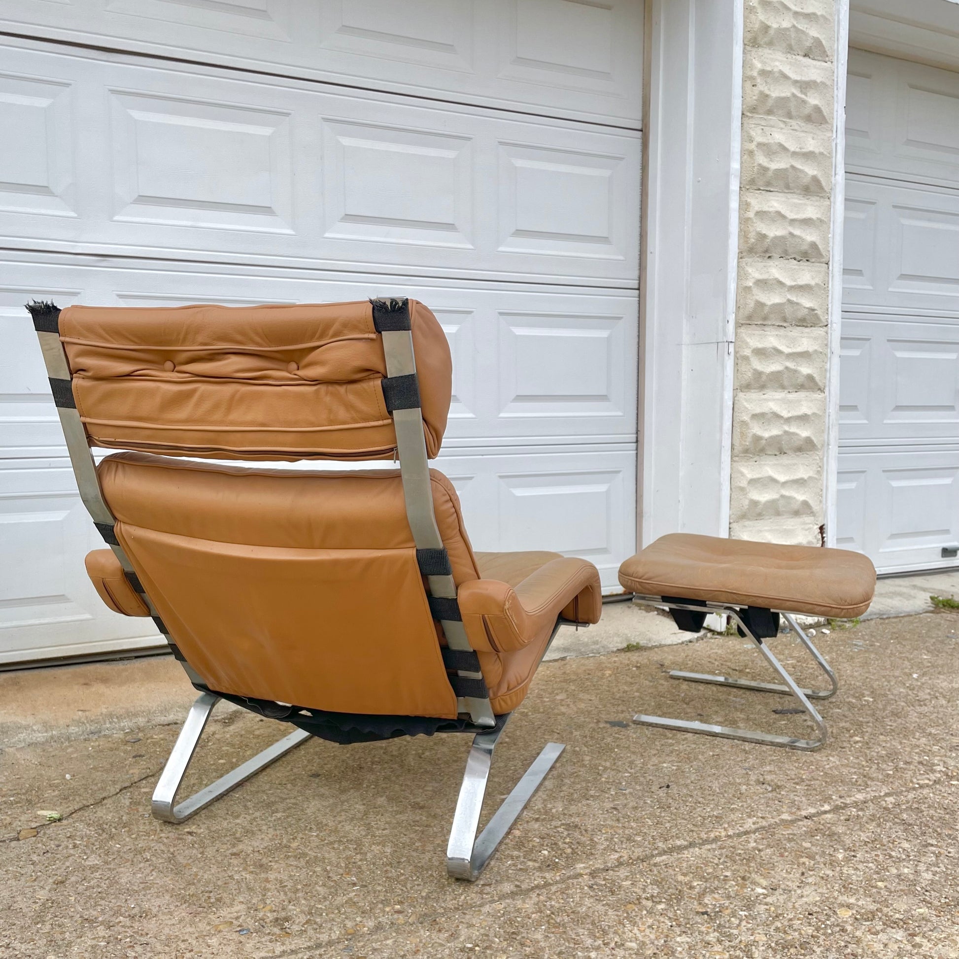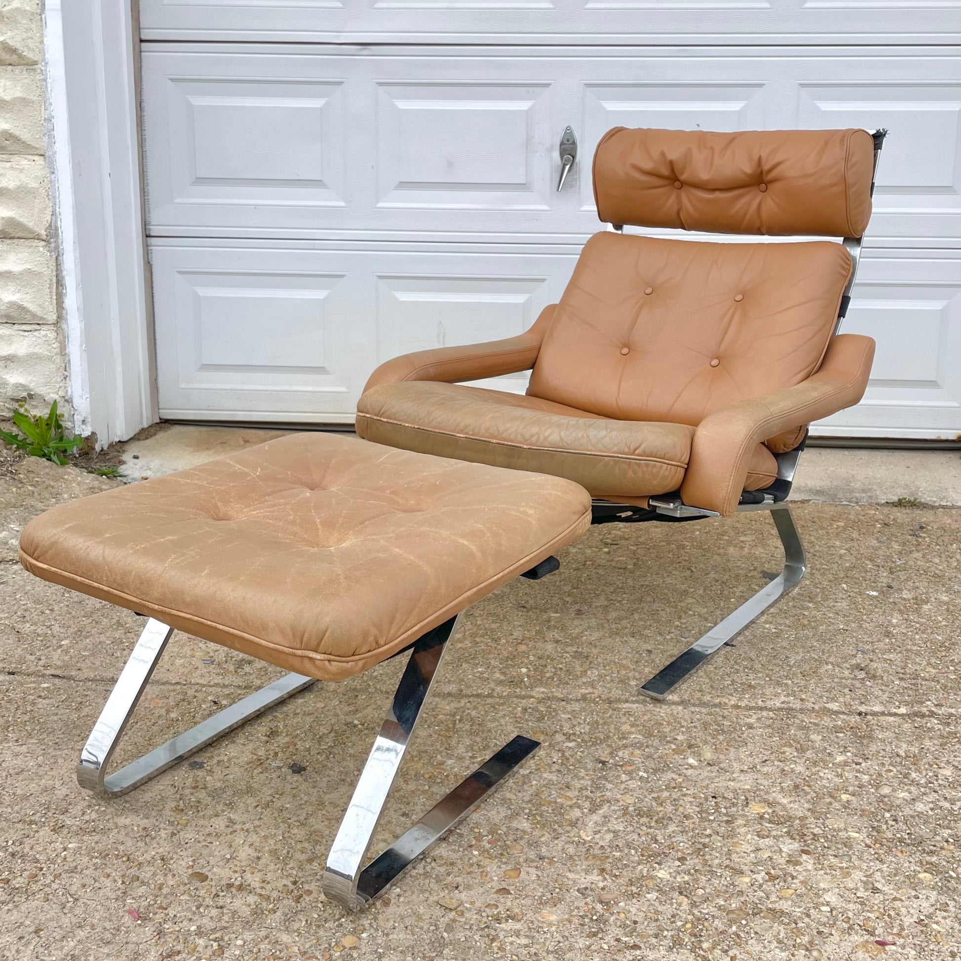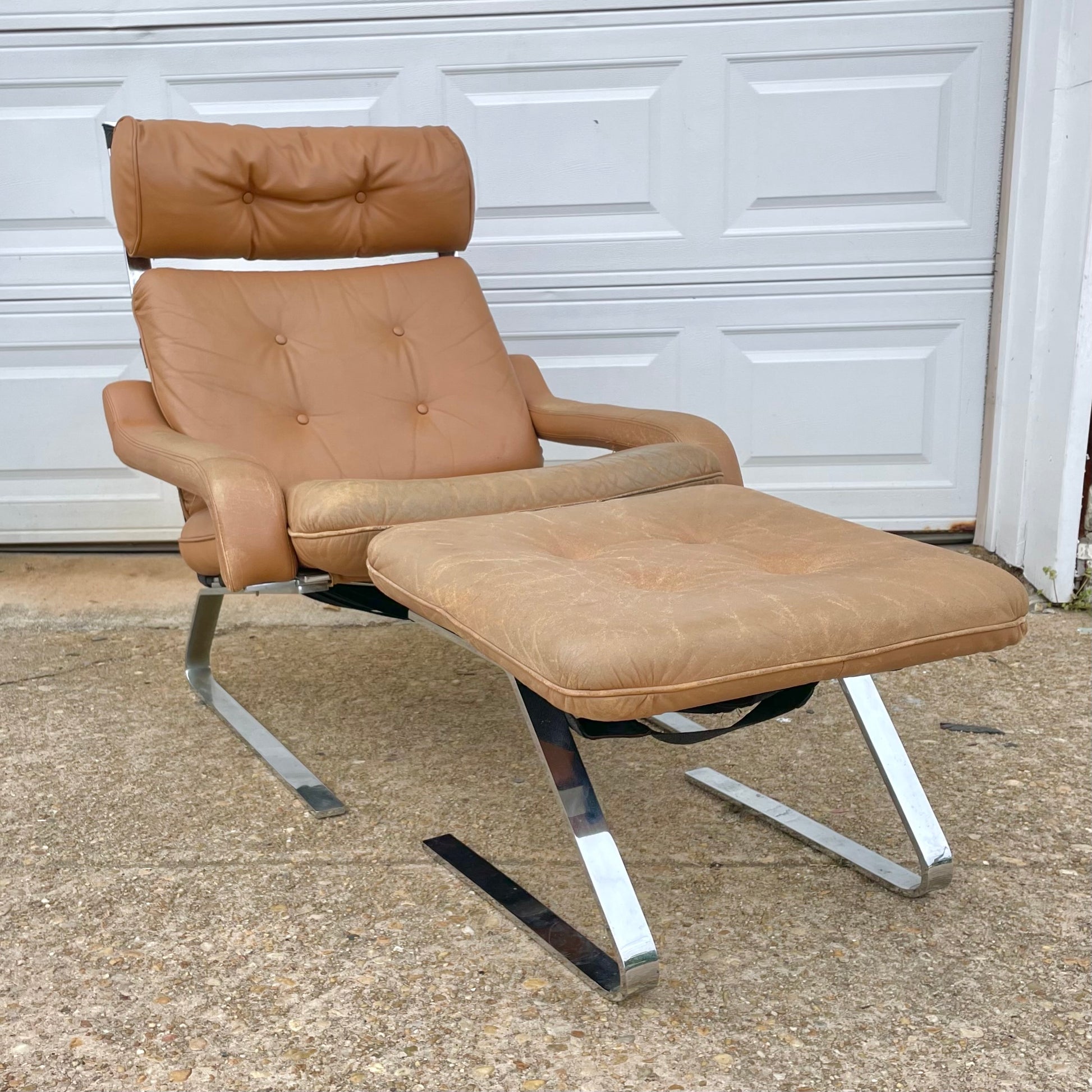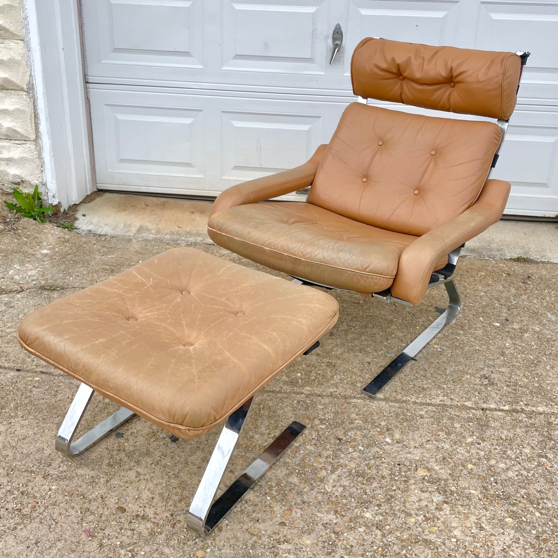 Vintage Scandinavian/ European Modernist Style Steel & Leather Easy Chair/Ottoman
