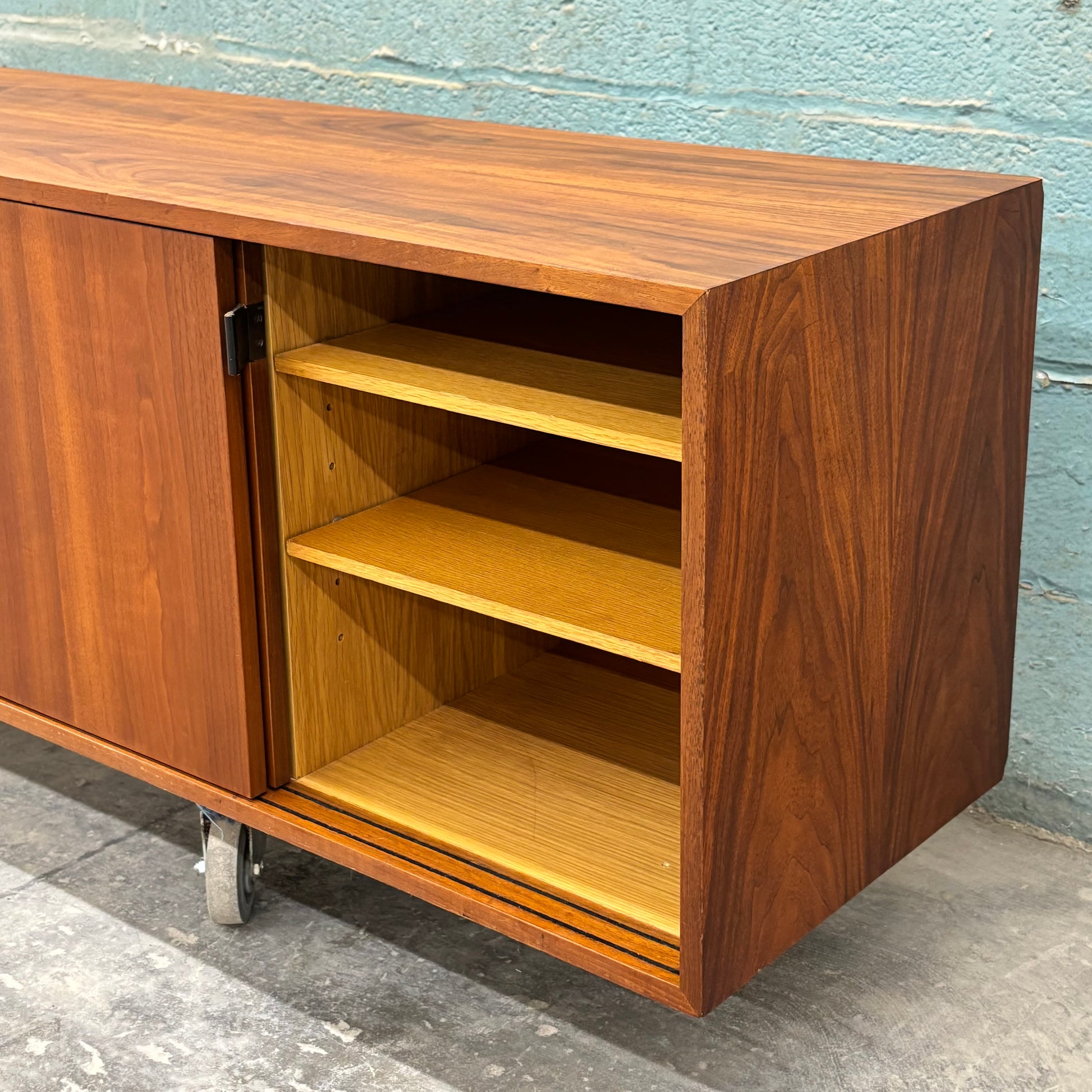 Vintage Walnut & Leather Credenza by Florence Knoll