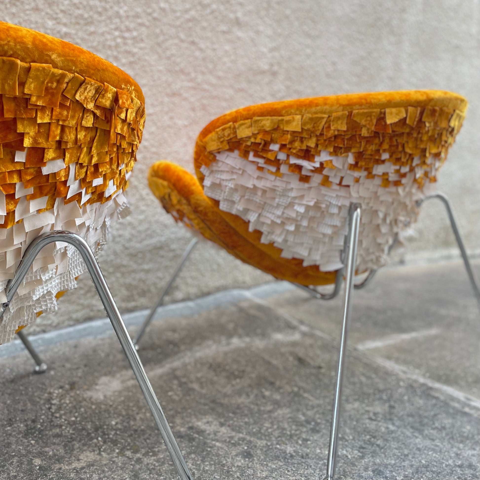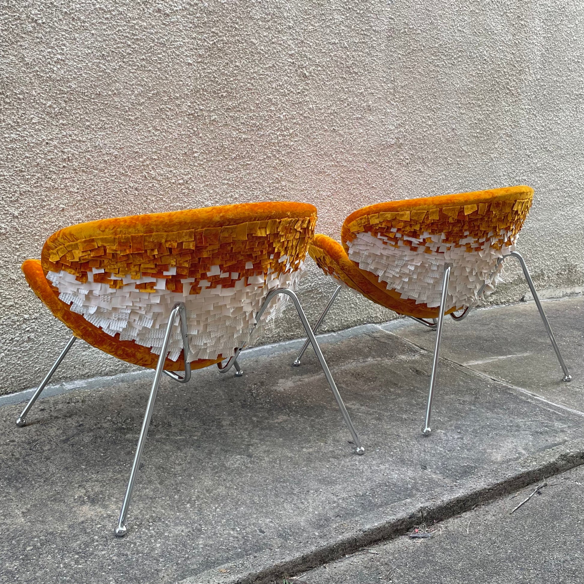 MCM style “Zested” Orange Slice dupes, replicating the iconic F437 ‘Orange Slice’ chair by #pierrepaulin for #artifort with an eccentric & citrusy twist 🍊
